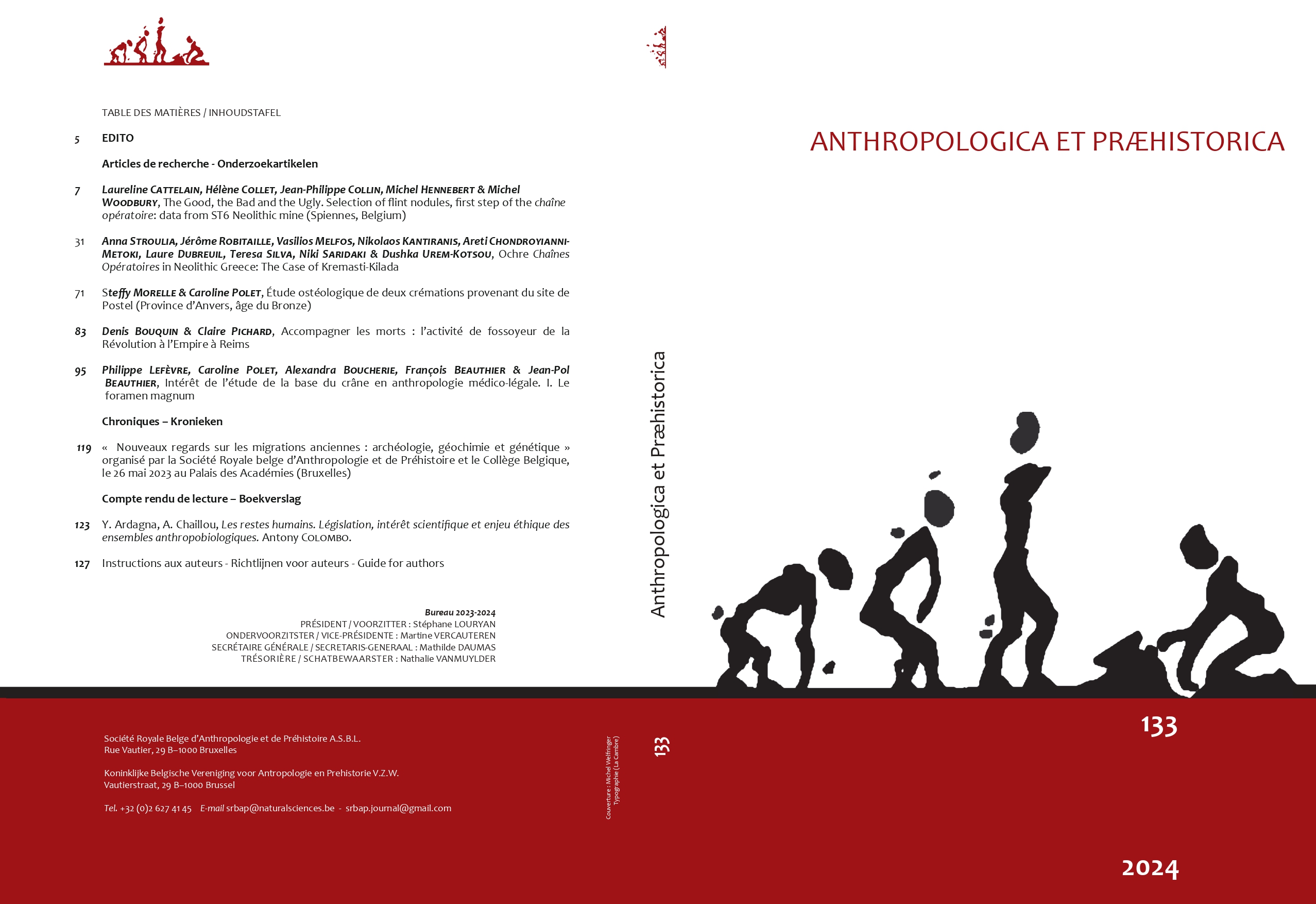 You are here: Home / Associated publications / Anthropologica & Prehistorica / ANTHROPOLOGICA ET PREHISTORICA / AP-133 / AP133_SRBAP_couverture_page-0001.jpg