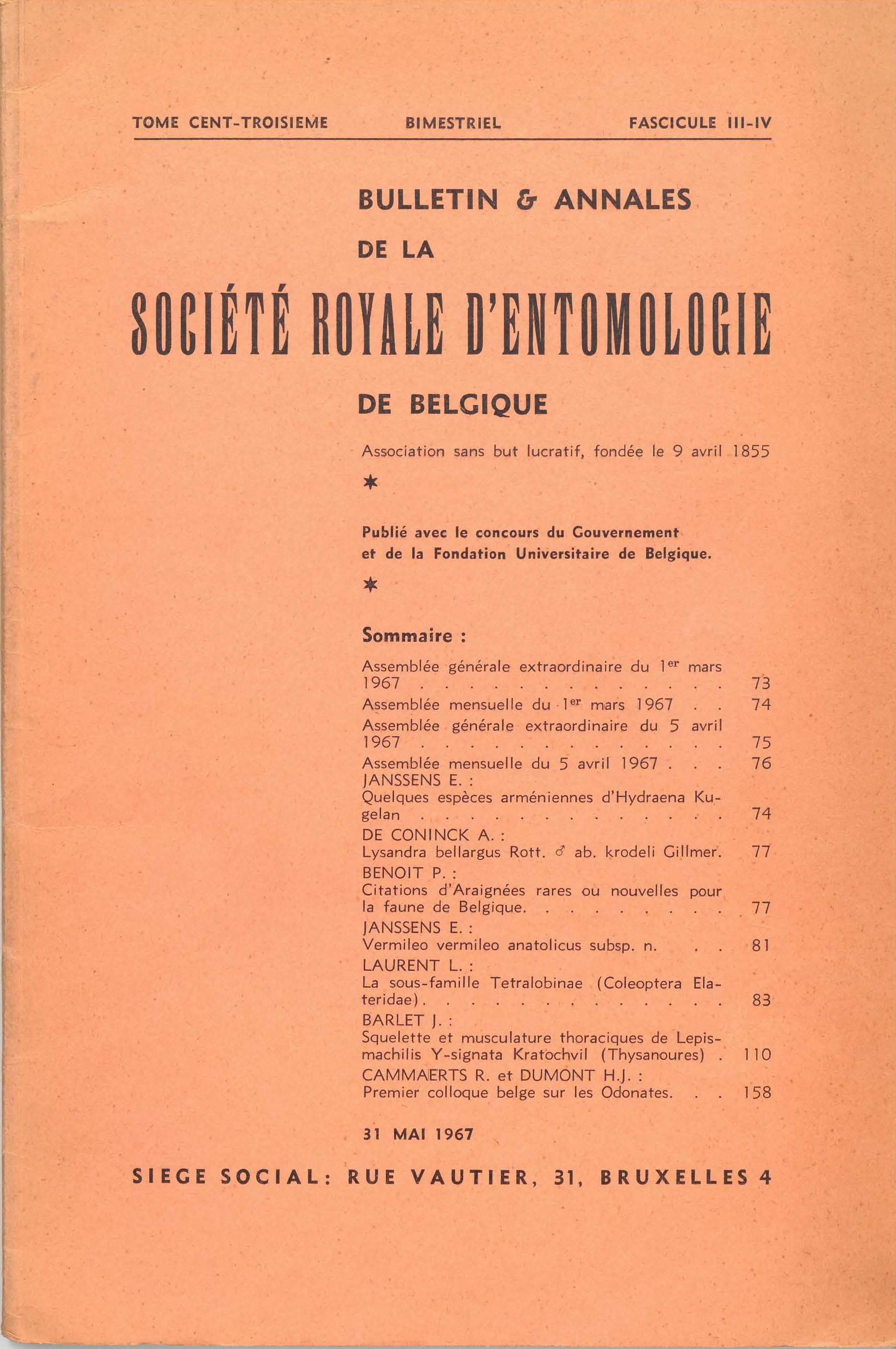 Société royale belge d'Entomologie - Koninklijke Belgische Vereniging voor Entomologie