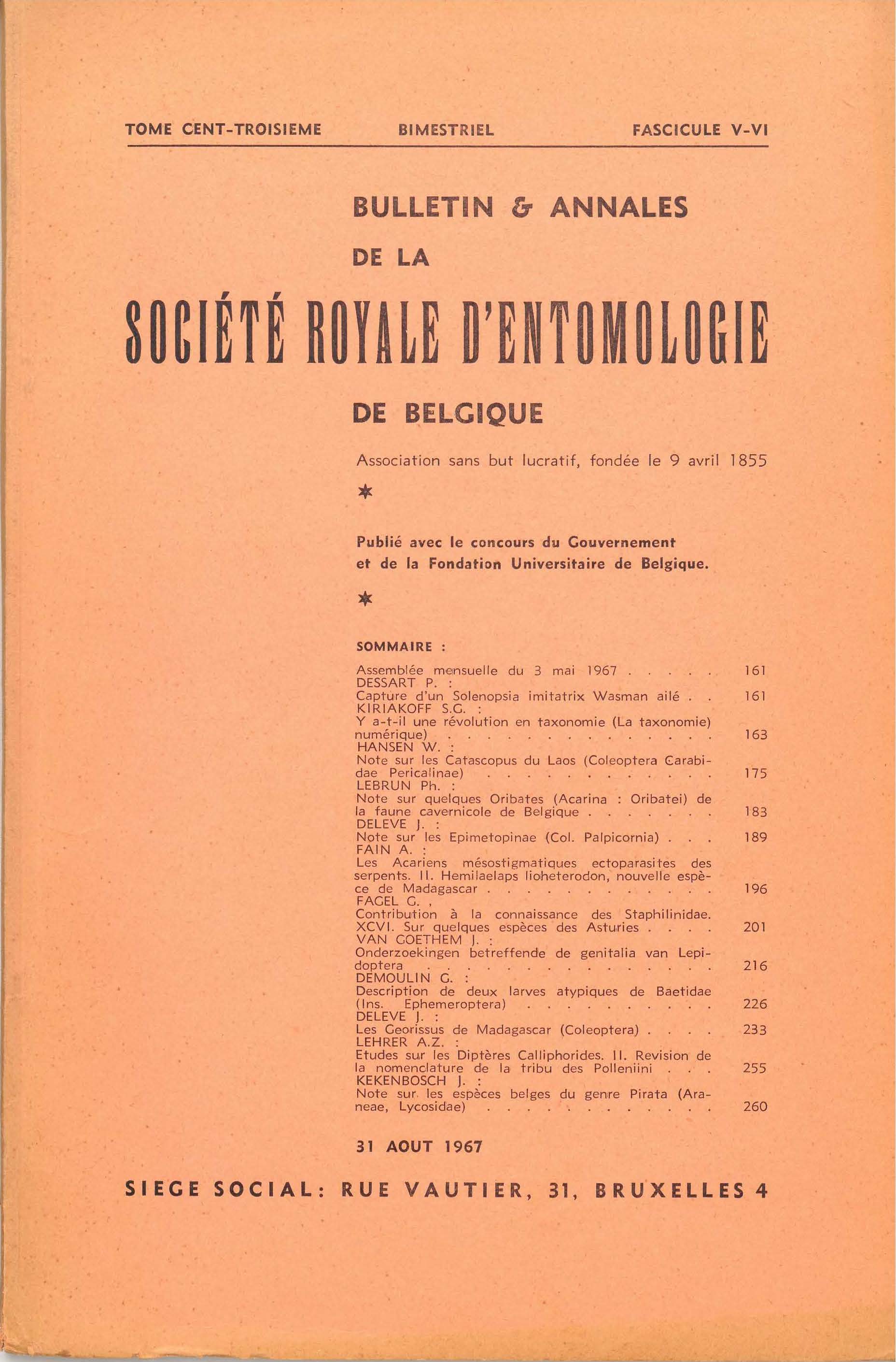 Société royale belge d'Entomologie - Koninklijke Belgische Vereniging voor Entomologie