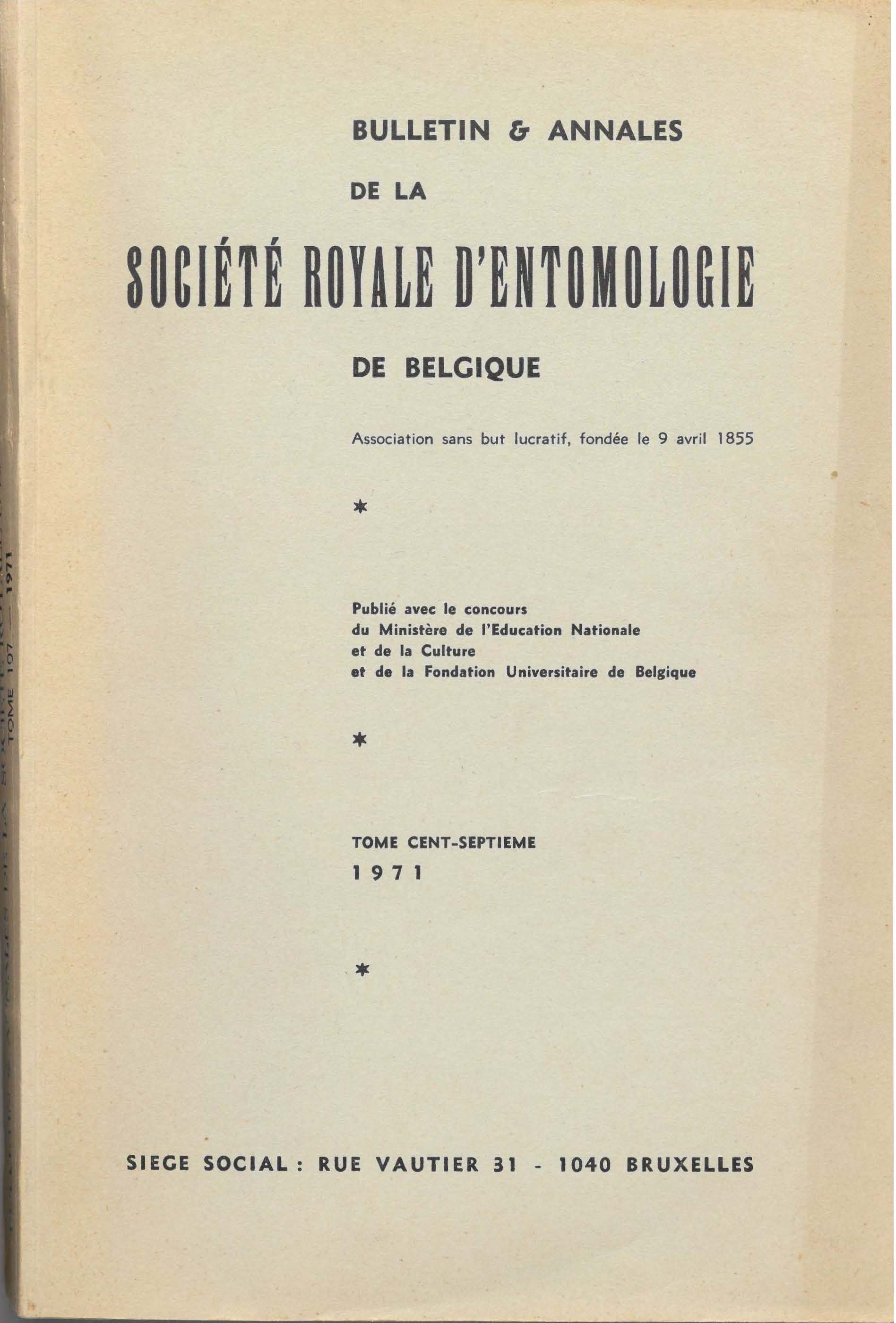 Société royale belge d'Entomologie - Koninklijke Belgische Vereniging voor Entomologie