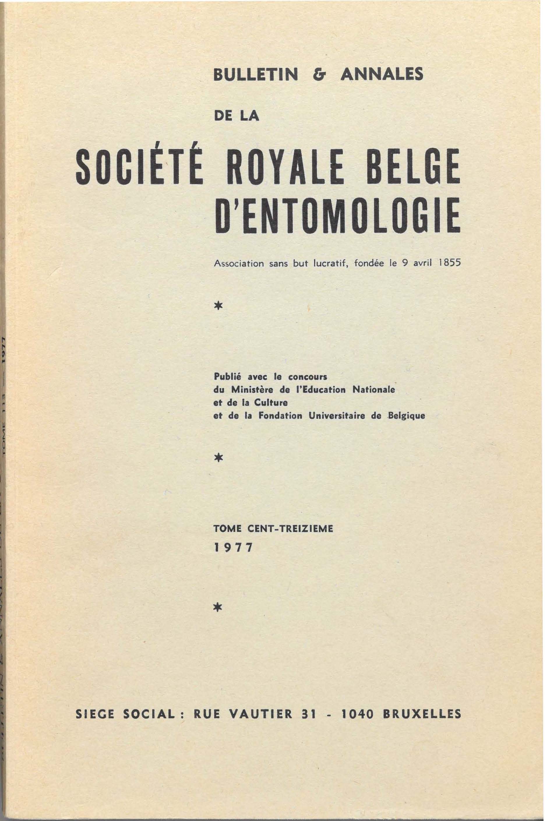 Société royale belge d'Entomologie - Koninklijke Belgische Vereniging voor Entomologie