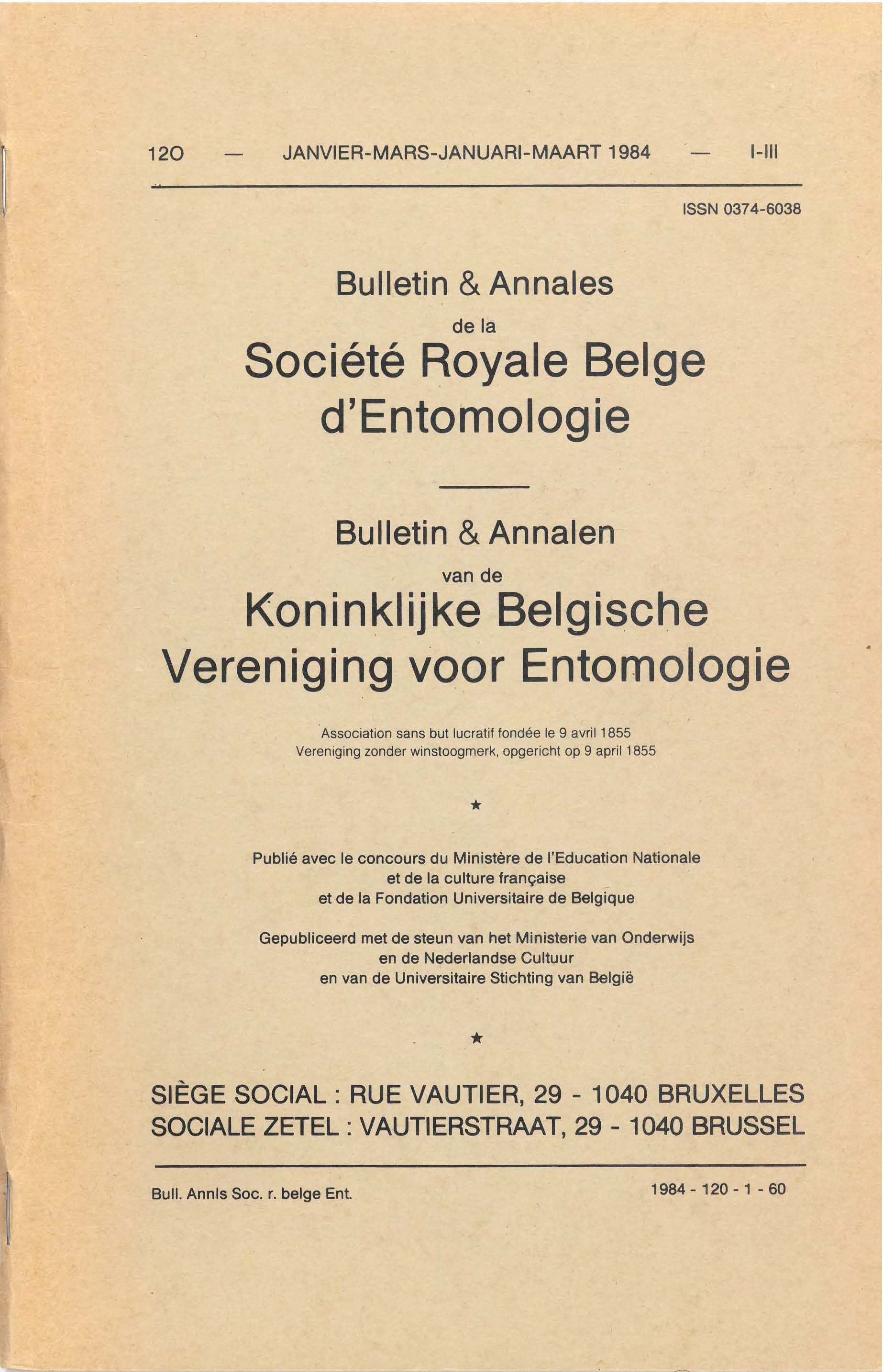 Société royale belge d'Entomologie - Koninklijke Belgische Vereniging voor Entomologie