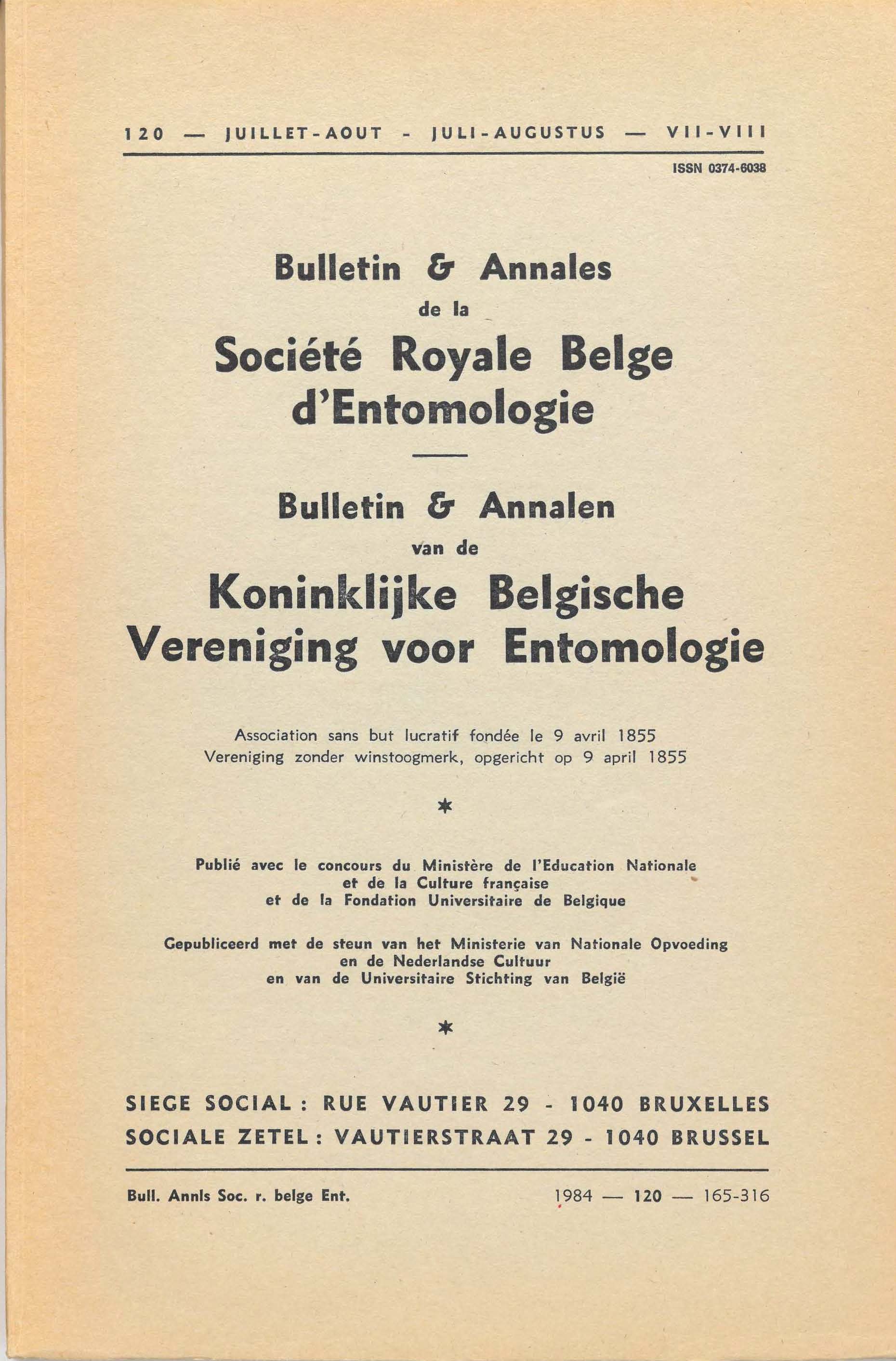 Société royale belge d'Entomologie - Koninklijke Belgische Vereniging voor Entomologie
