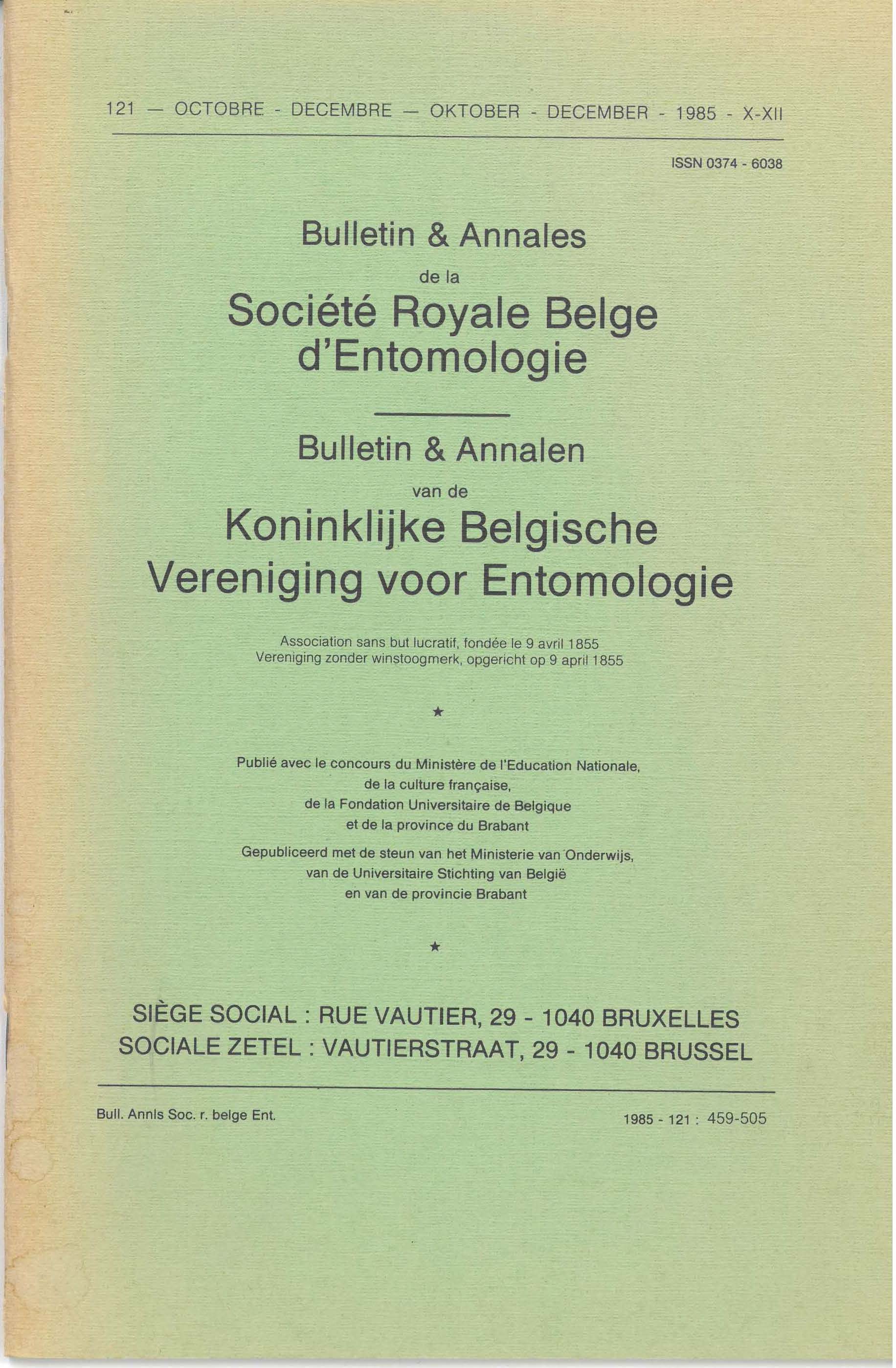 Société royale belge d'Entomologie - Koninklijke Belgische Vereniging voor Entomologie