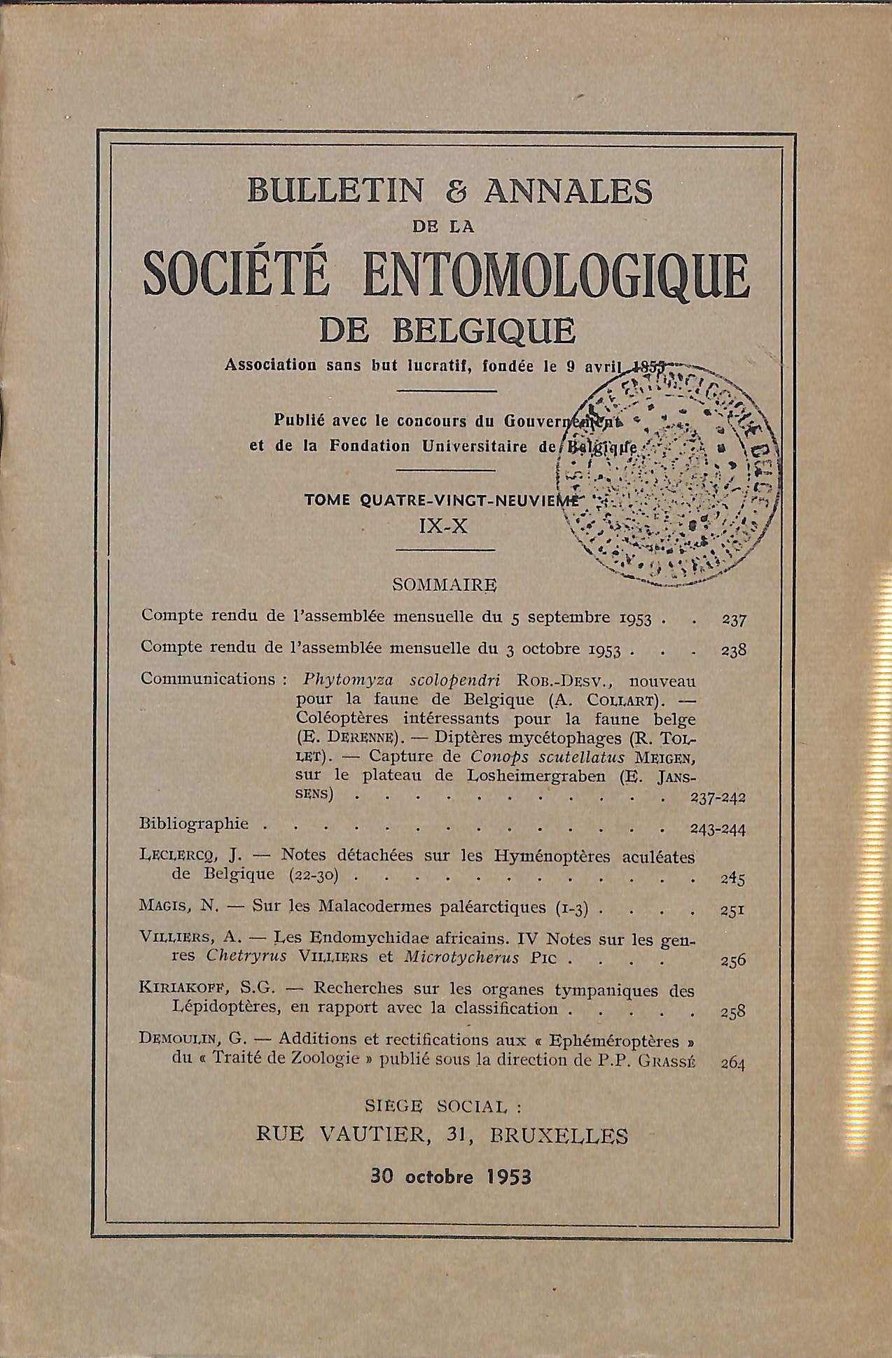 Société royale belge d'Entomologie - Koninklijke Belgische Vereniging voor Entomologie