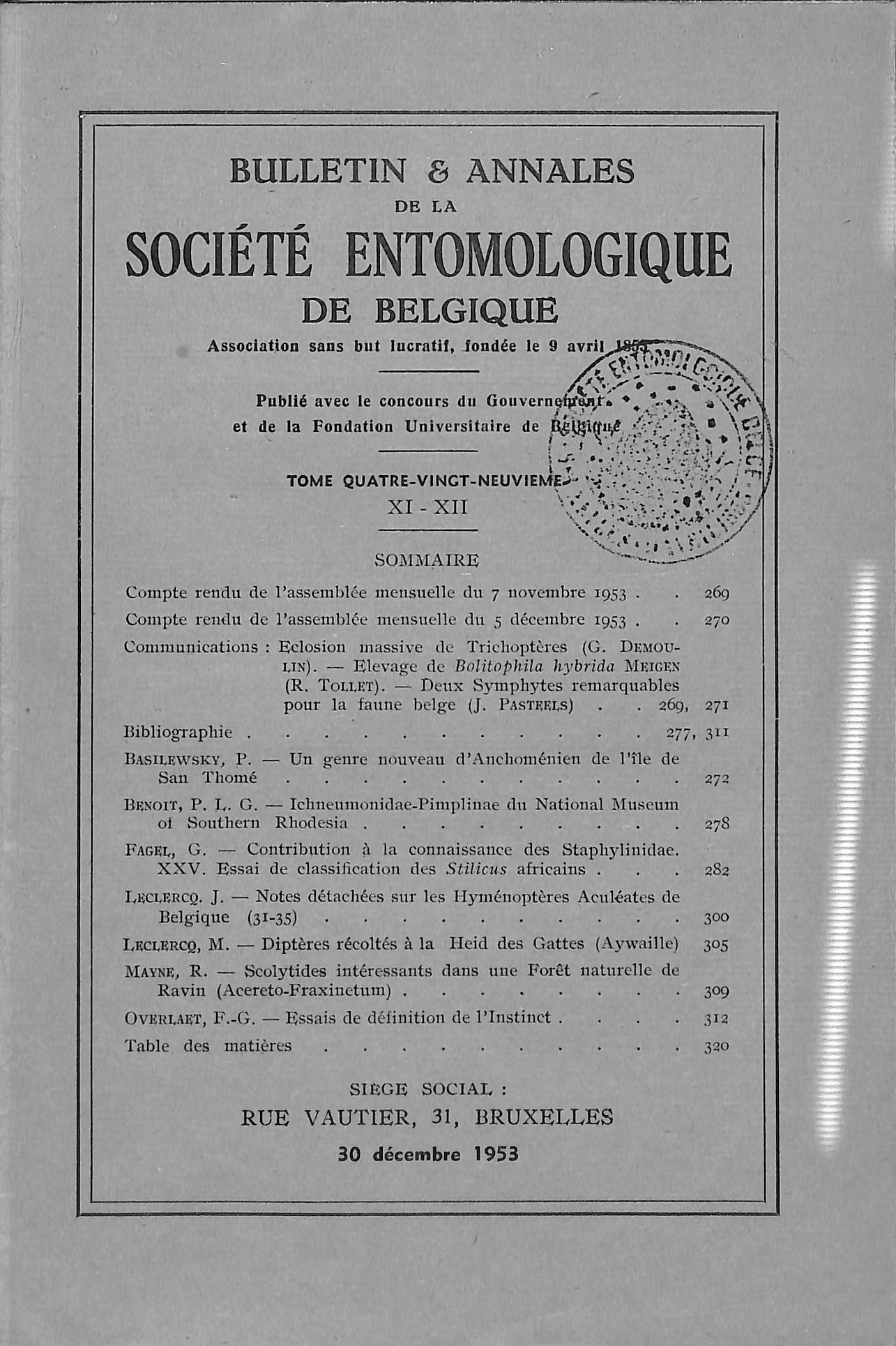 Société royale belge d'Entomologie - Koninklijke Belgische Vereniging voor Entomologie