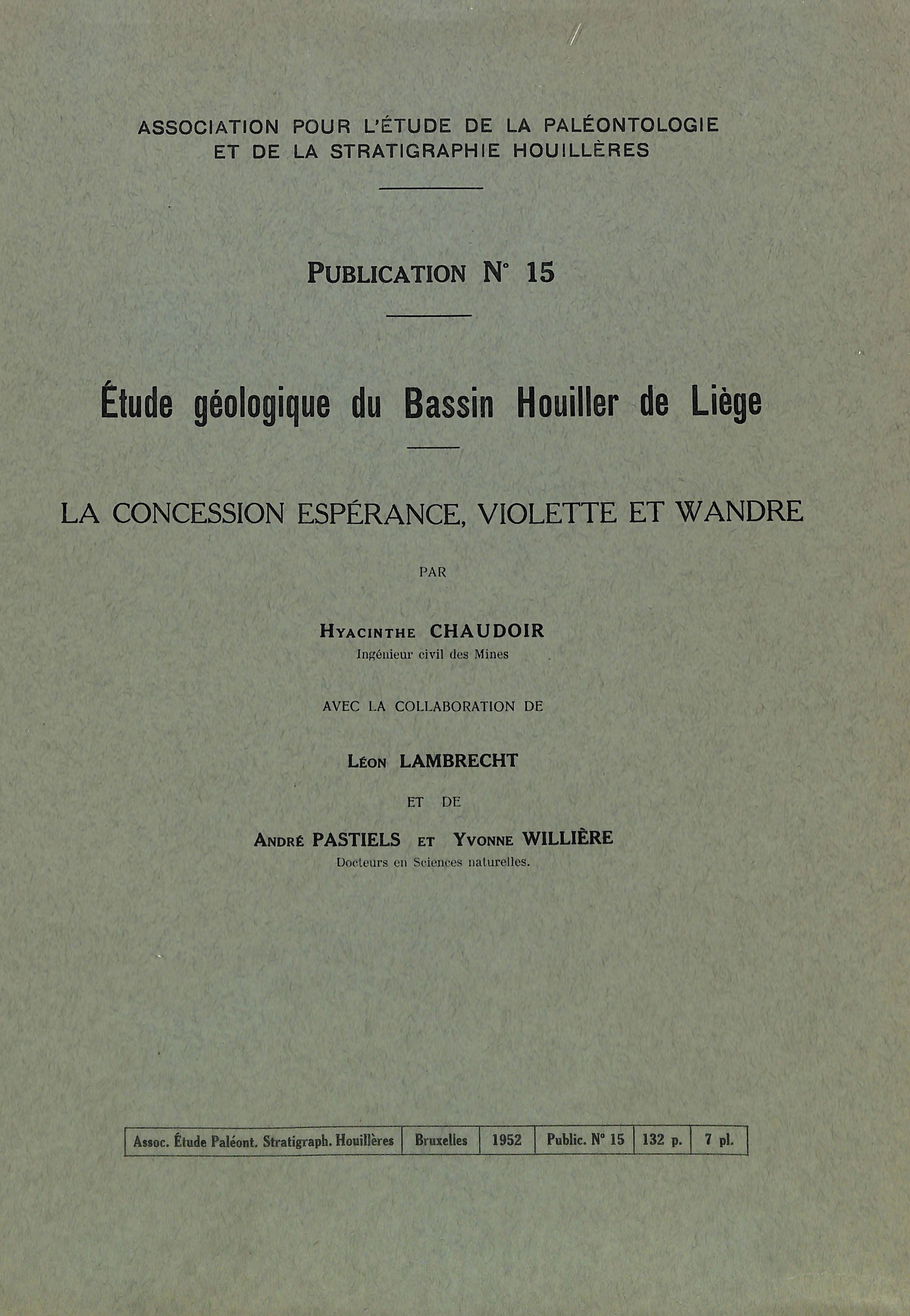 1952 N°15 - Etude géologique du Bassin Houiller de Liège - La concession Espérance, Violette et Wandre