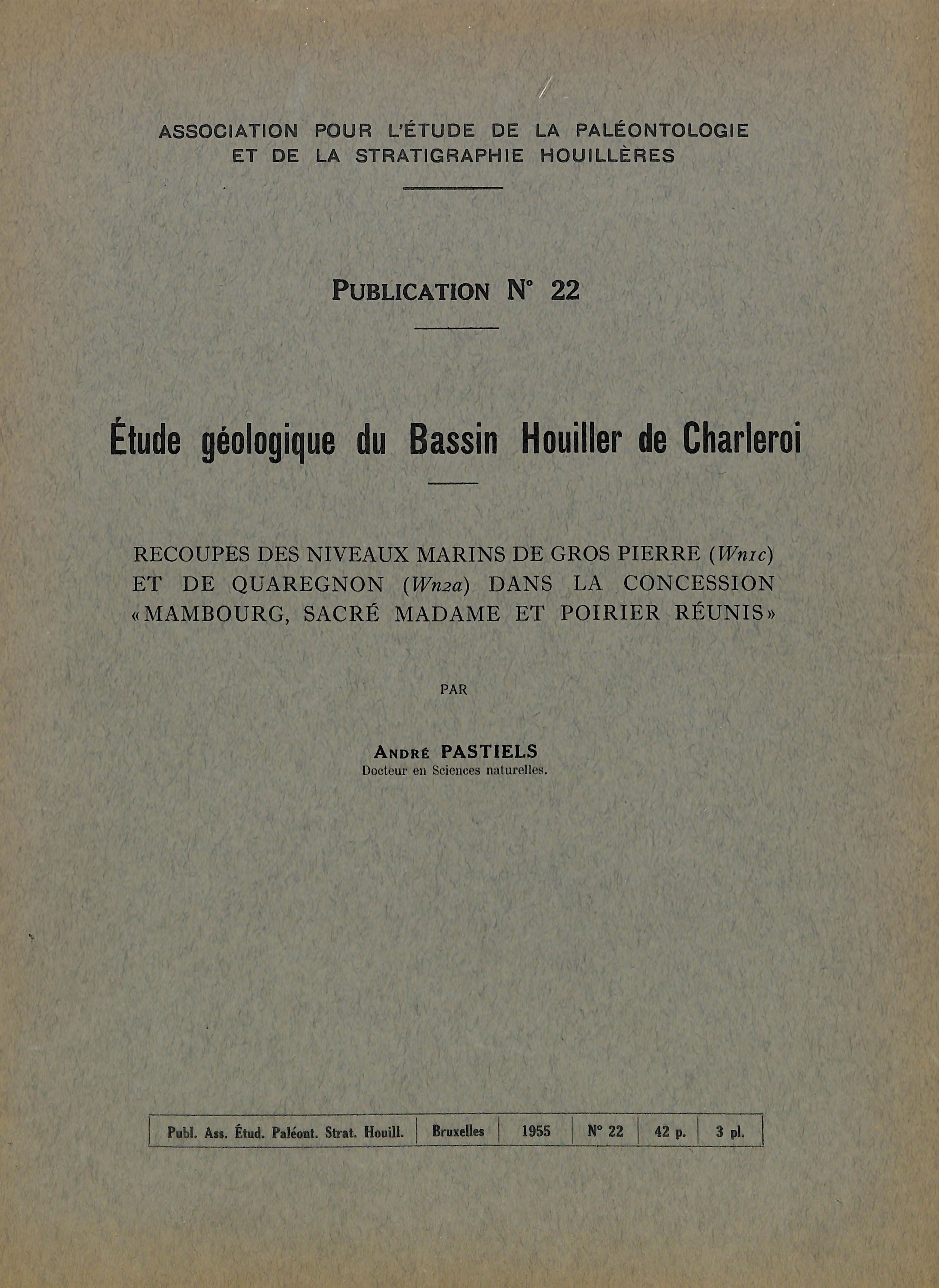 1955 N°22 - Etude géologique du Bassin Houiller de Charleroi - Recoupes des niveaux marins de Gros Pierre (WnIc) et de Quaregnon (Wn2a) dans la concession "Mambourg, Sacré Madame et Poirier Réunis"