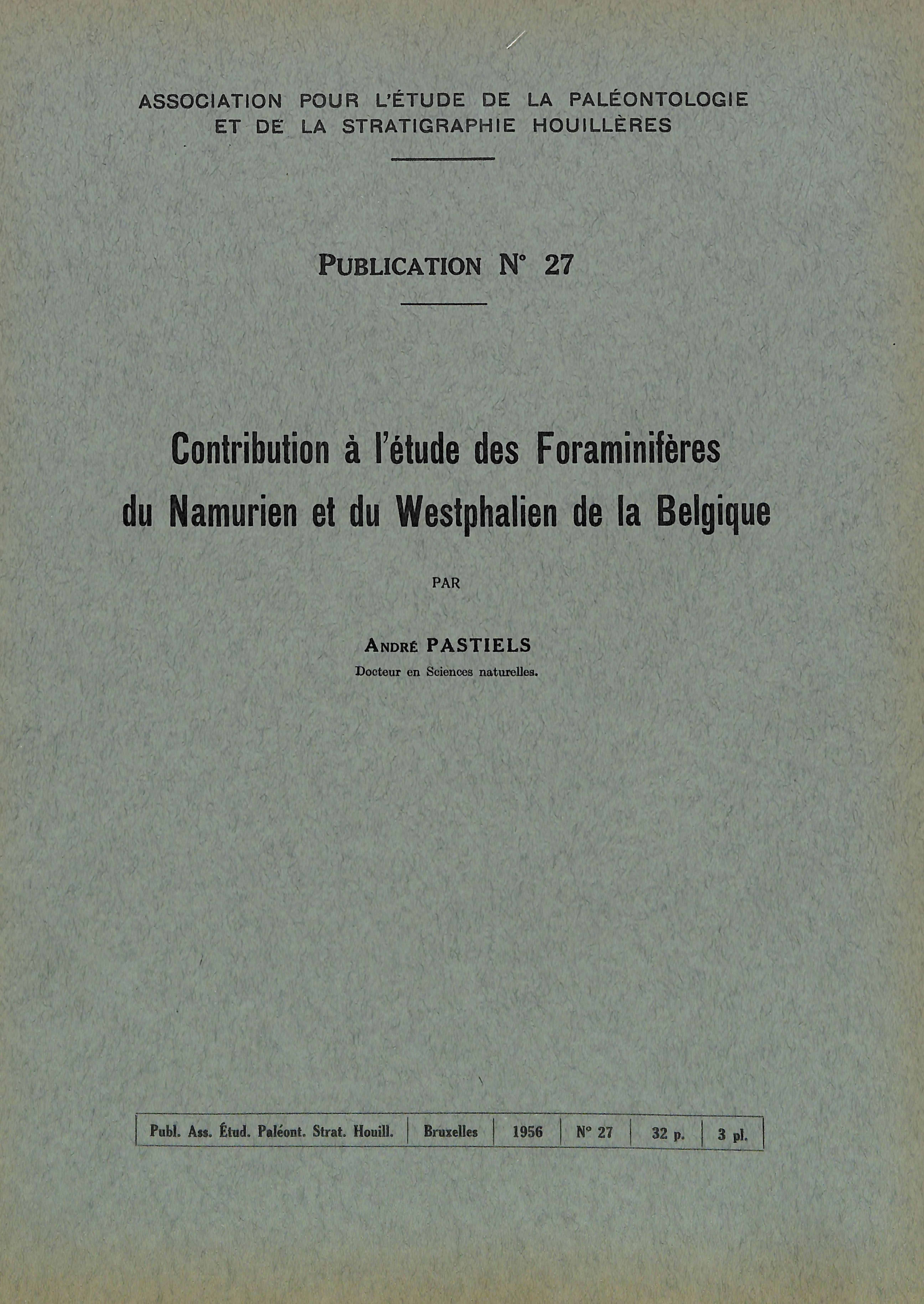 1956 N°27 - Contribution à l'étude des Foraminifères du Namurien et du Westphalien de la Belgique