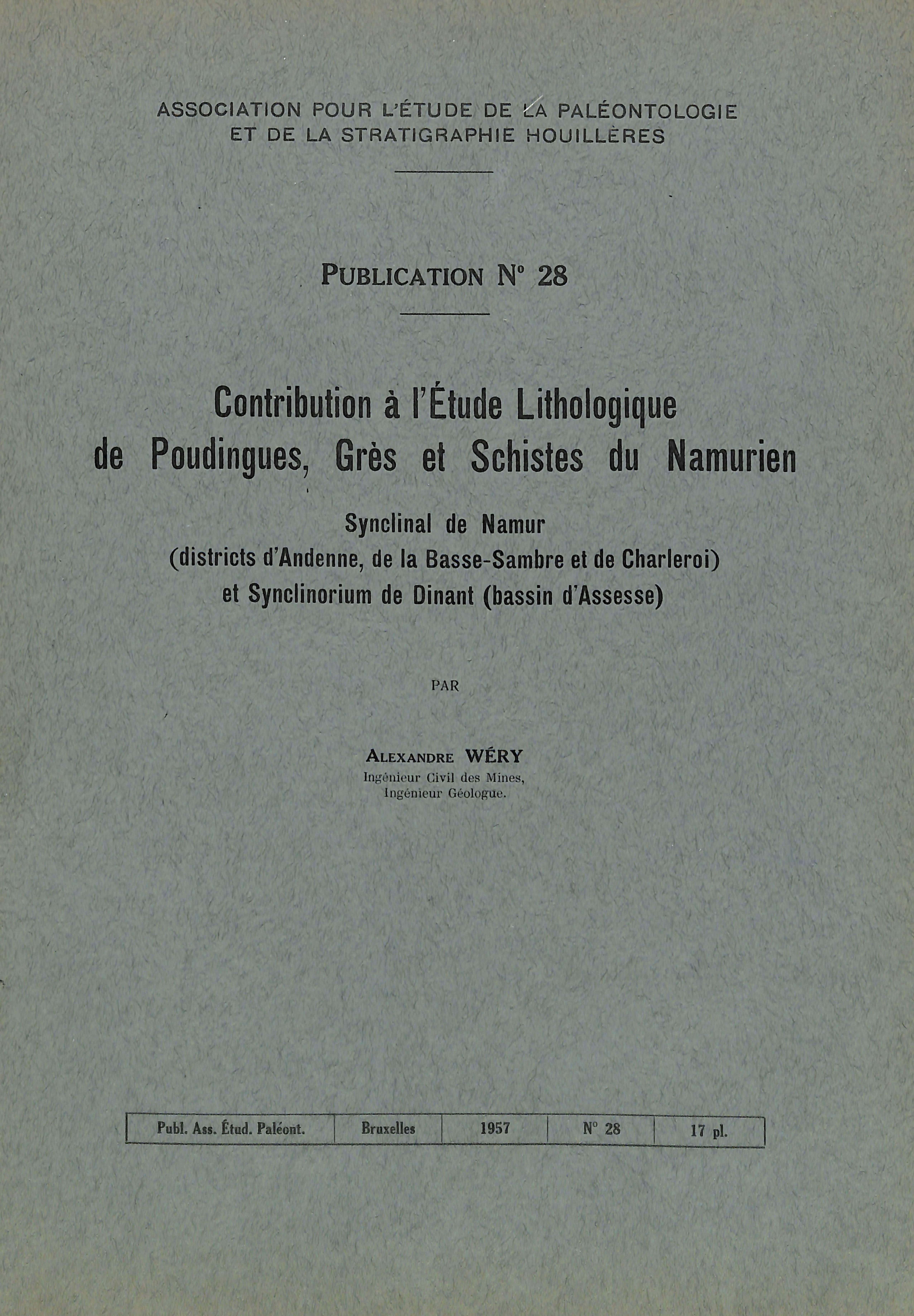 1957 N°28 - Contribution à l'Etude Lithologique de Poudingues, Grès et Schistes du Namurien - Synclinal de Namur (districts d'Andenne, de la Basse-Sambre et de Charleroi) et Synclinorium de Dinant (Bassin d'Assesse)