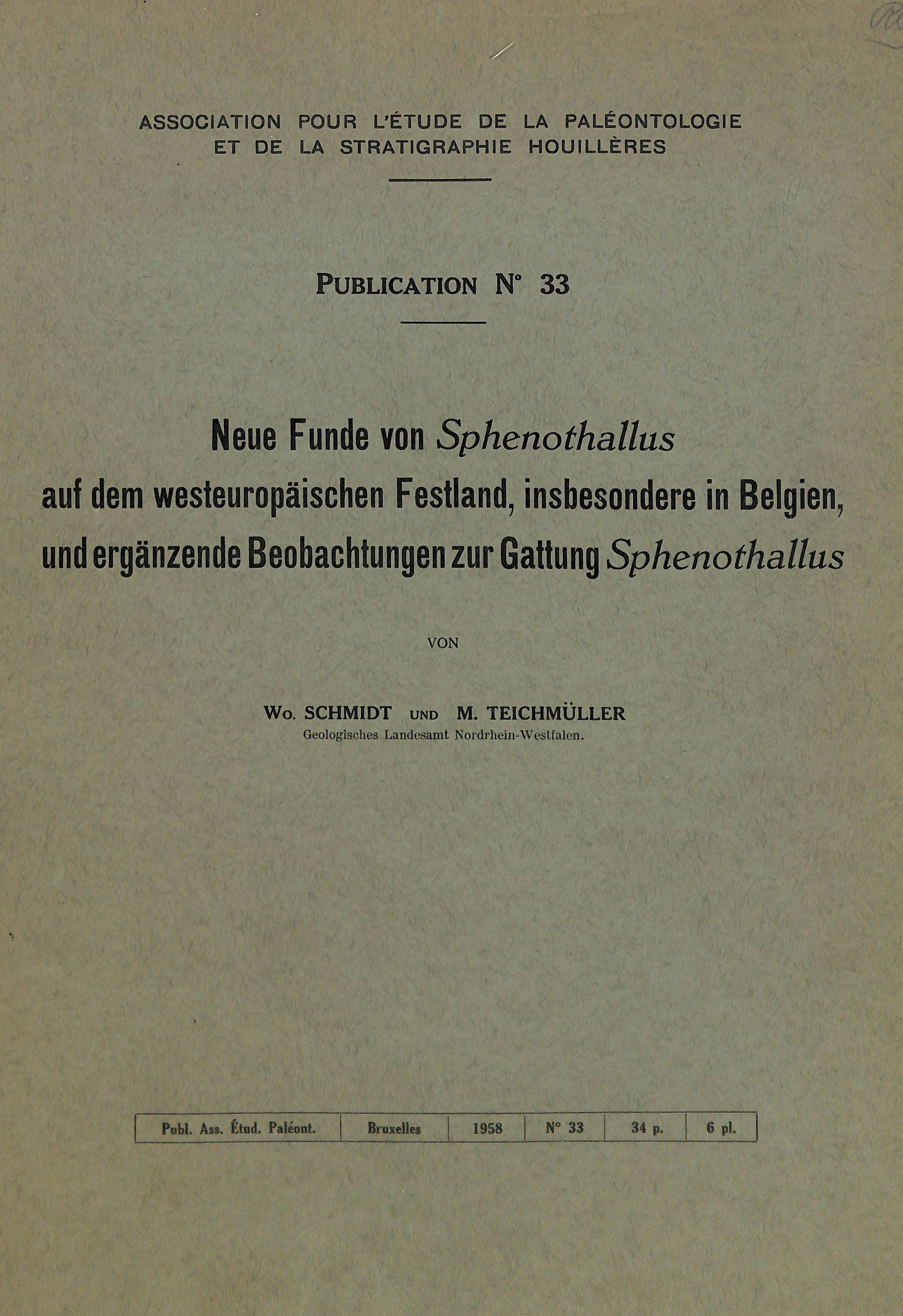 1958 N°33 - Neue Funde von Sphenothallus auf dem westeuropäischen Festland, insbesondere in Belgien, und ergäzende Beobachtungen zur Gattung Sphenothallus