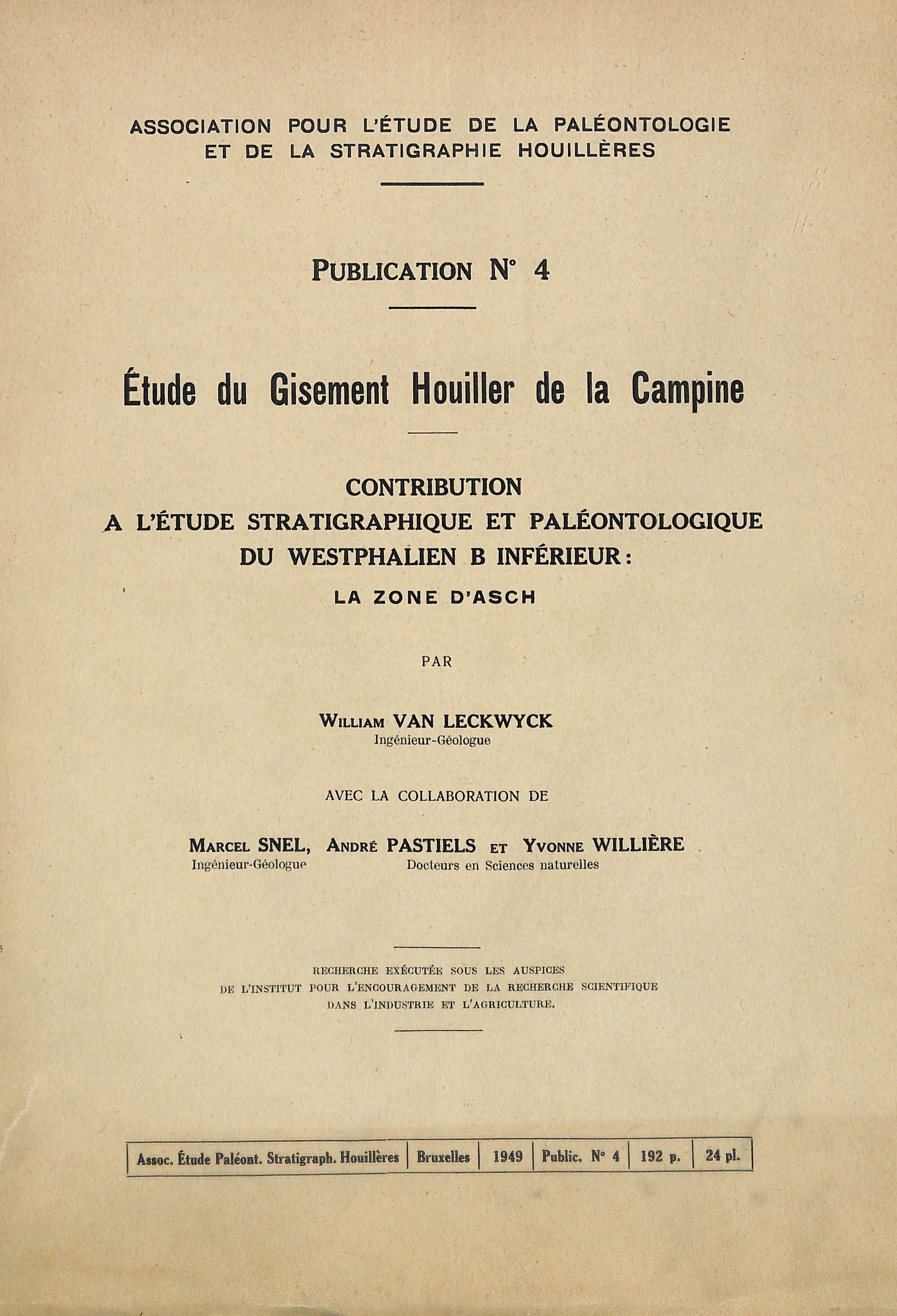 1949 N°4 - Etude du Gisement Houiller de la Campine - Contribution à l'étude stratigraphique et paléontologique du Wesphalien B inférieur: la zone d'Asch