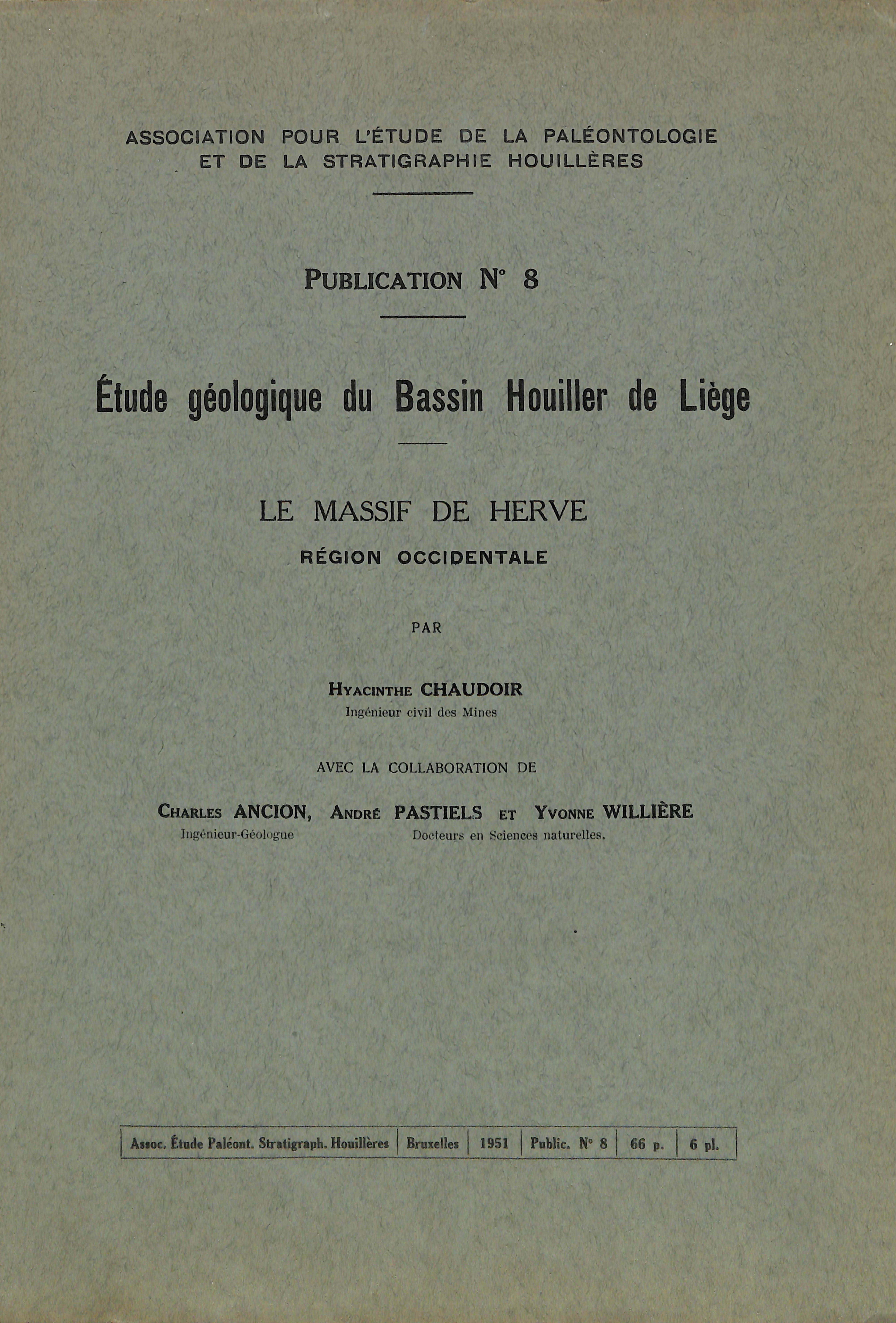 1951 N°8 - Etude géologique du Bassin Houiller de Liège - Le massif de Herve - Région occidentale