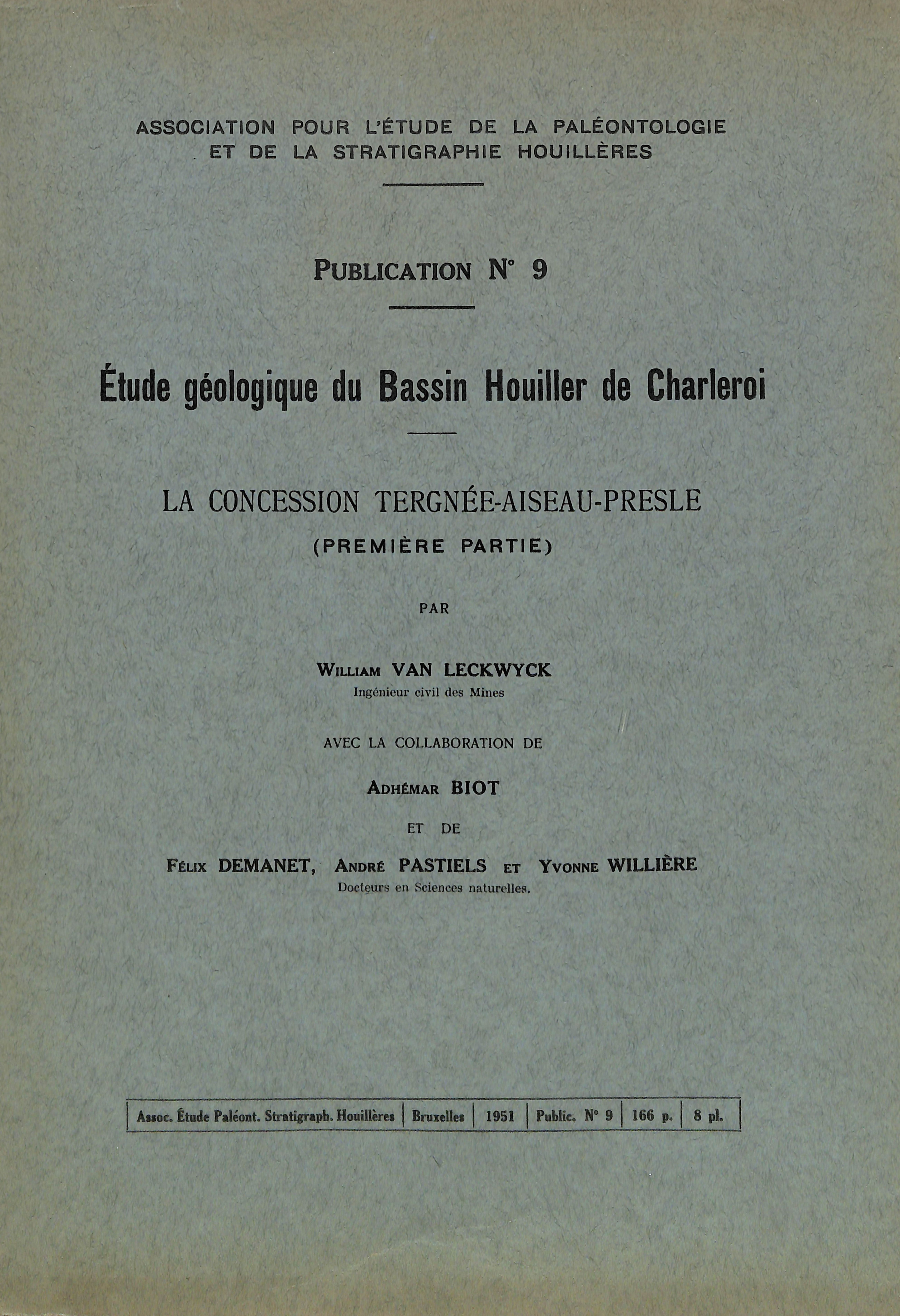 1951 N°9 - Etude géologique du Bassin Houiller de Charleroi - La concession Tergnée-Aiseau-Presle (Première partie)