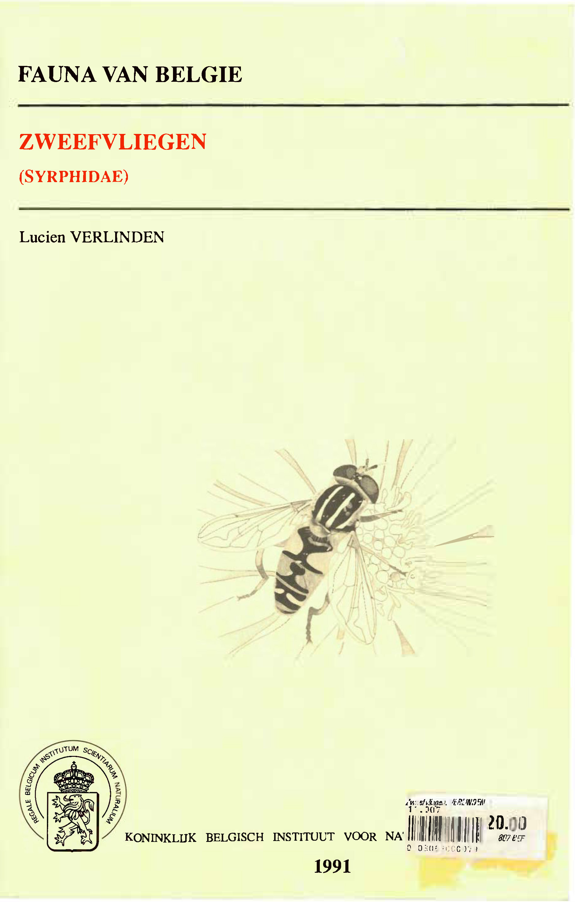 Voorpag Fauna van Belgie Zweefvliegen (Syrphidae) Lucien Verlinden 1991.jpg