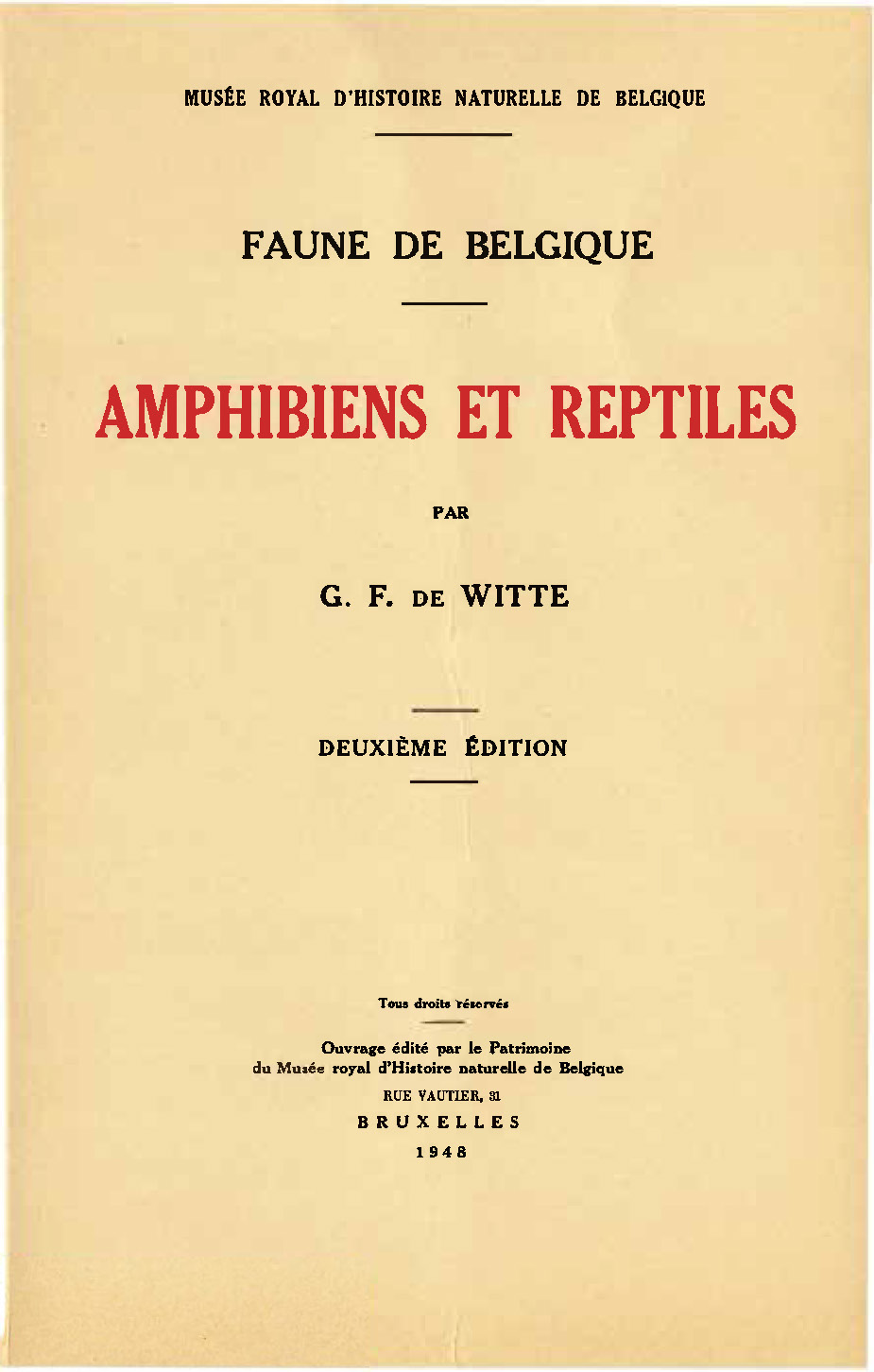 Voorpag Faune de Belgique Amphibiens et Reptiles Deuxième Edition G.F. de Witte 1948.jpg