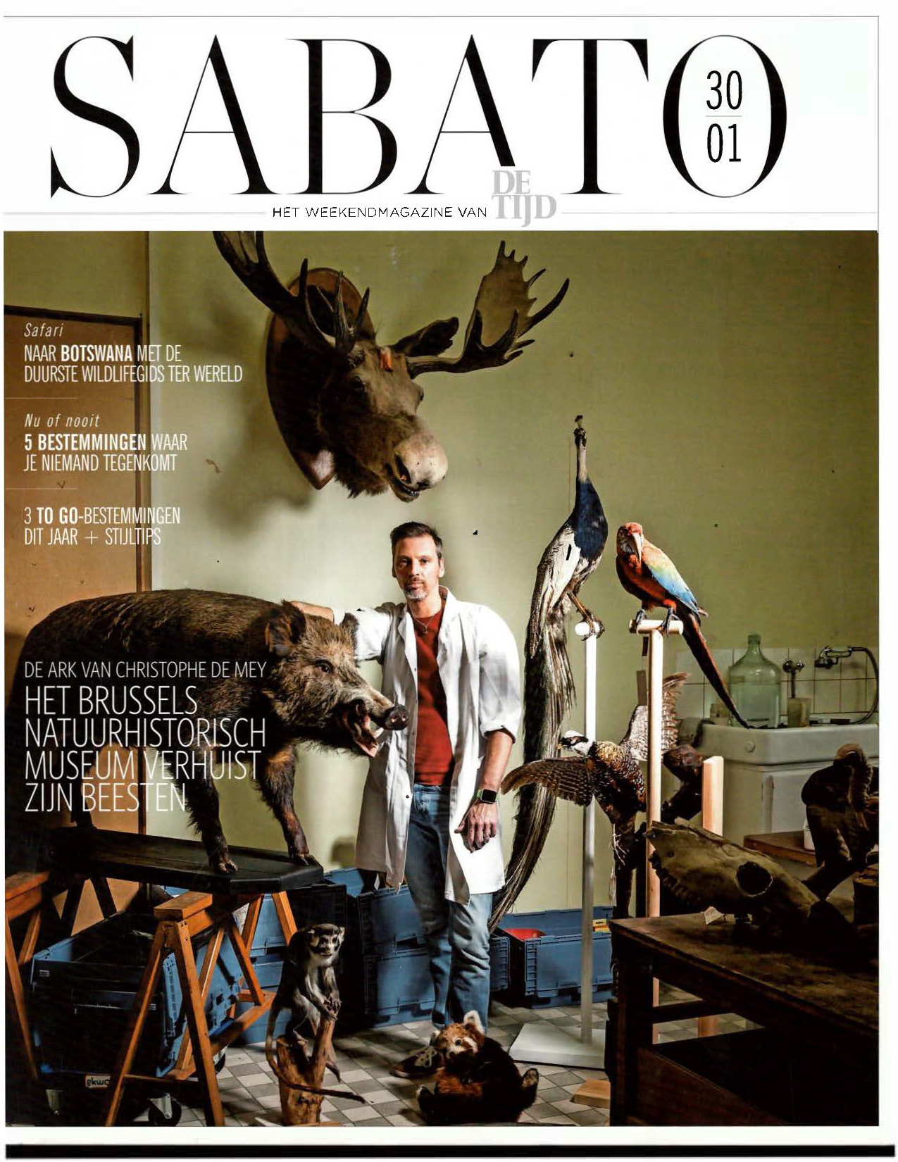 Voorpag Sabato De Tijd De ark van Chrisophe de Mey Het Brussels Natuurhistorisch museum verhuist zijn beesten.jpg