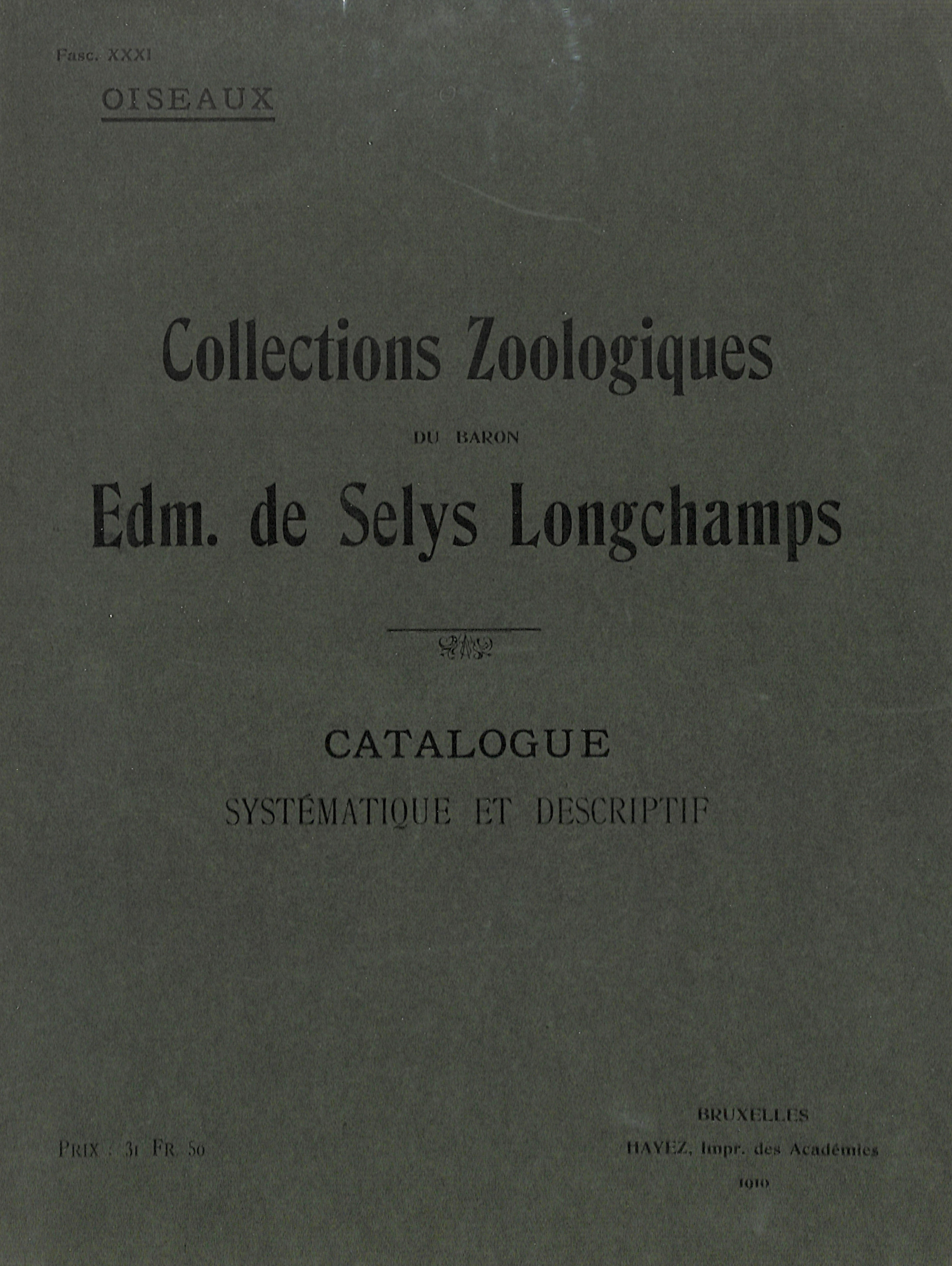 Systematic and Descriptive of Zoological Collections catalog of the Baron Edmond Selys Longchamps