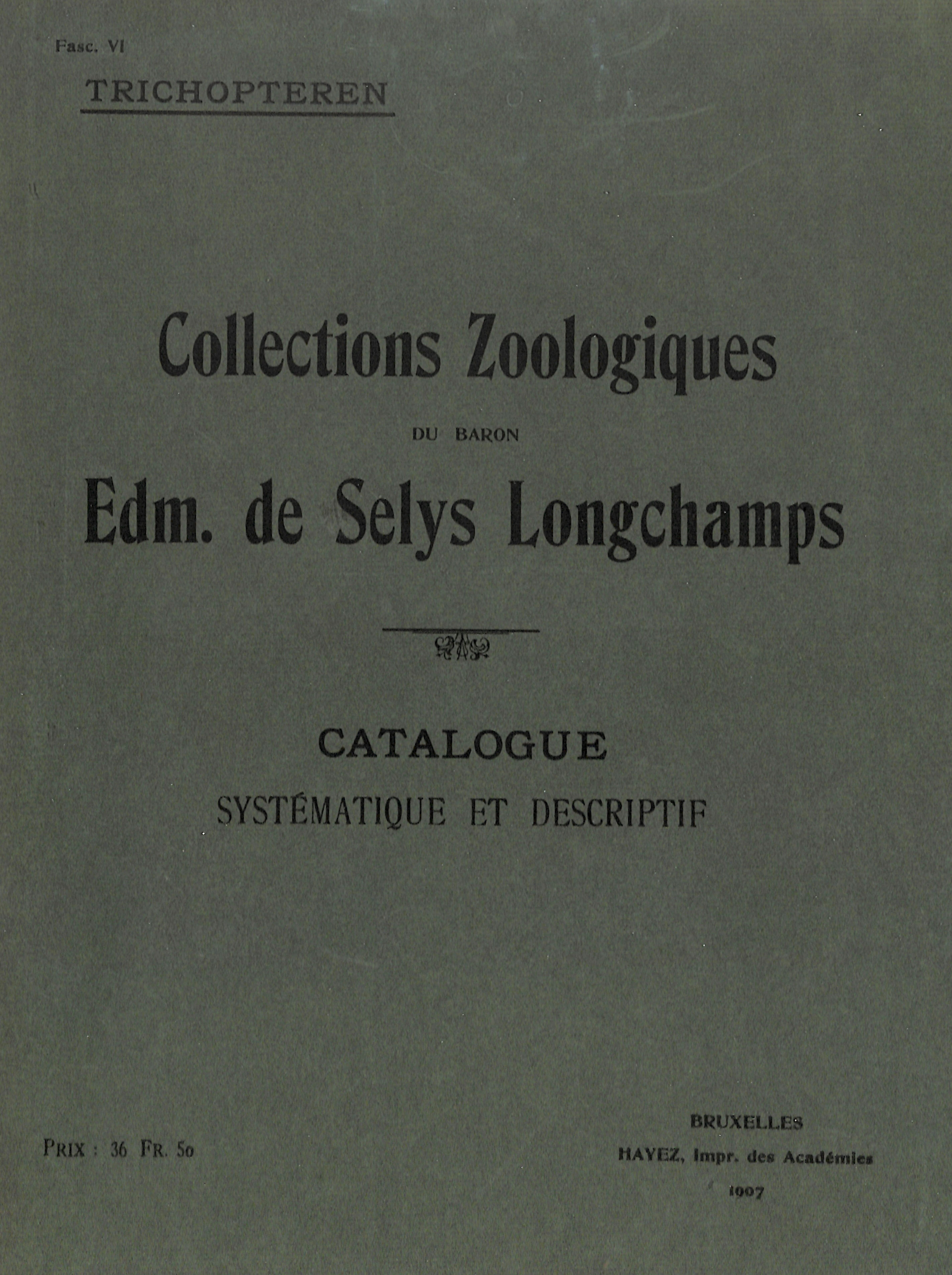 Systematic and Descriptive of Zoological Collections catalog of the Baron Edmond Selys Longchamps