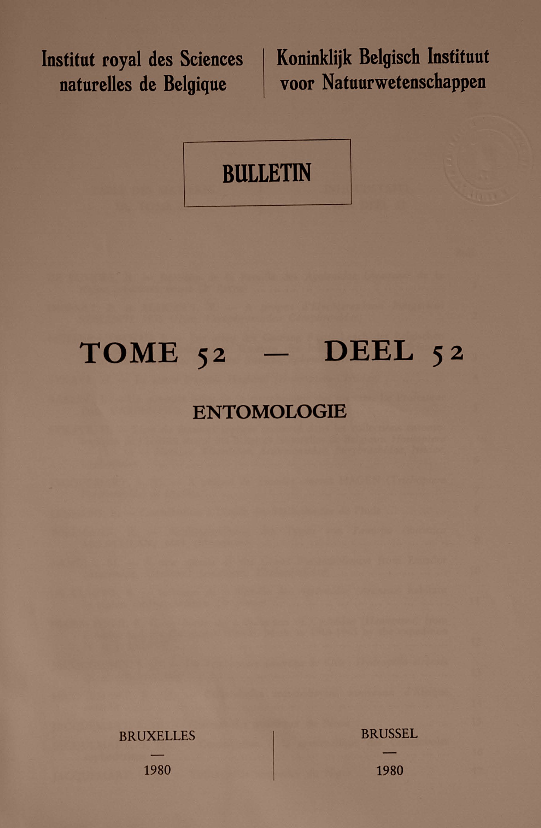 Bulletin of the Royal Belgian Institute of Natural Sciences - Entomology