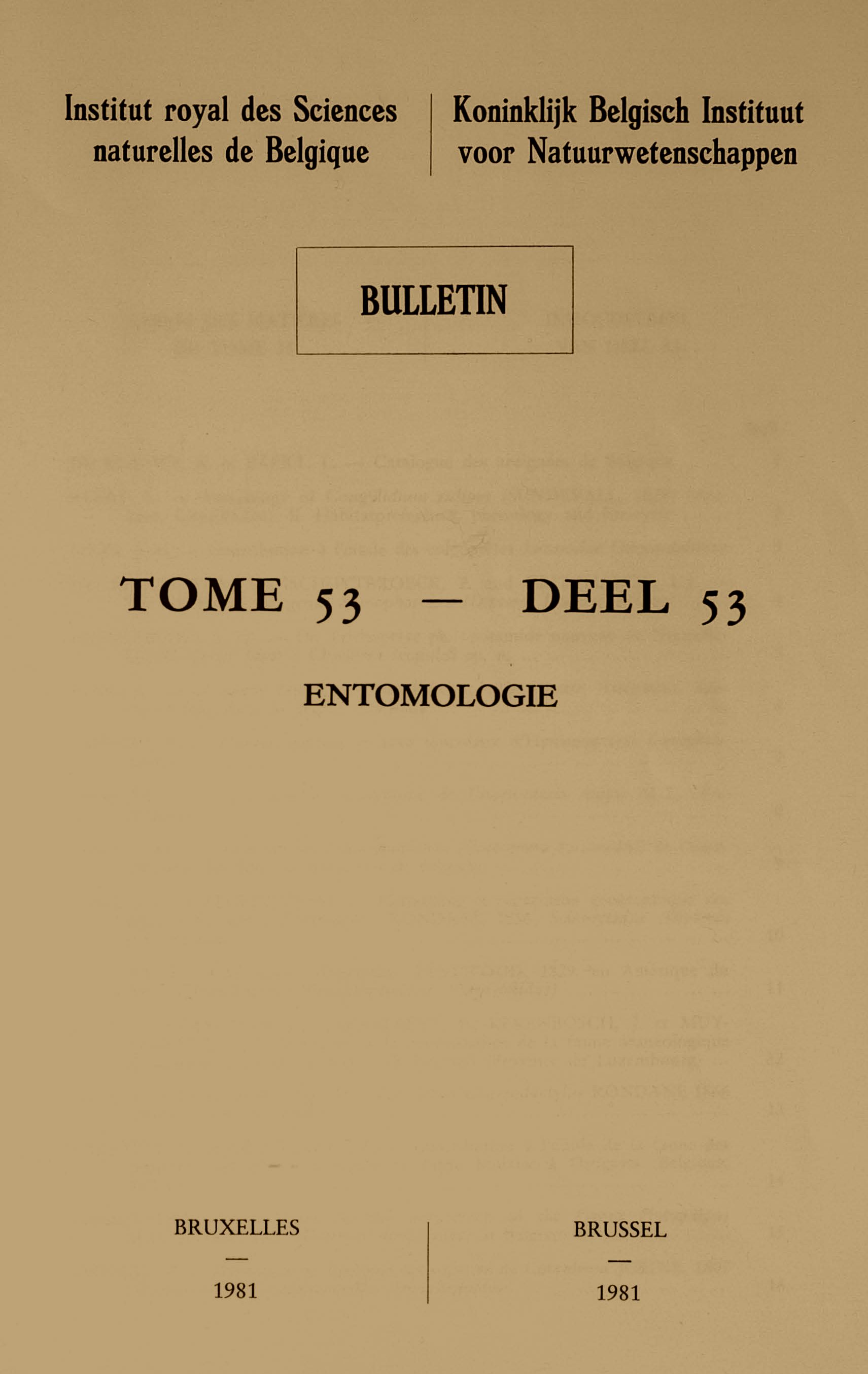 Bulletin of the Royal Belgian Institute of Natural Sciences - Entomology