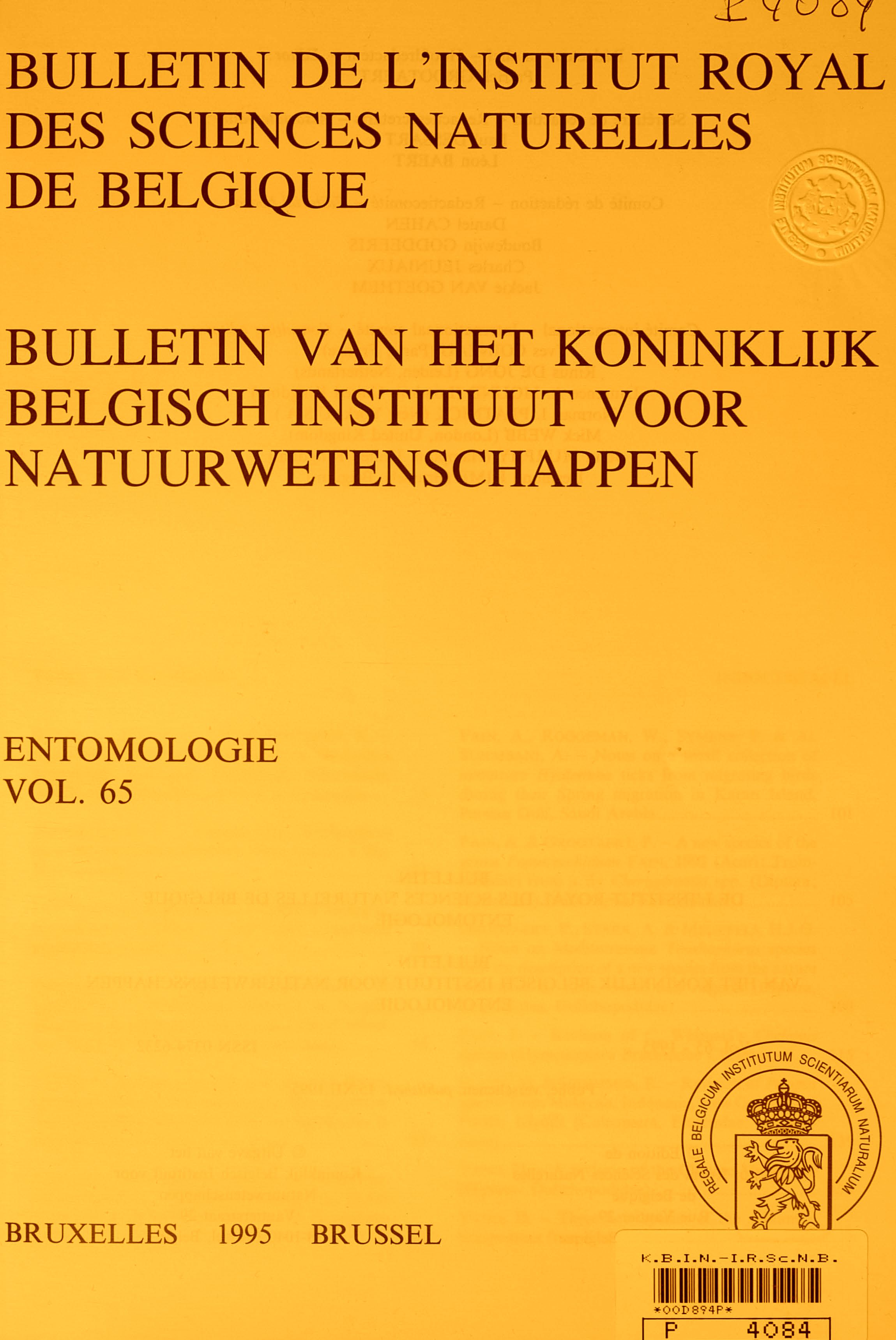 Bulletin of the Royal Belgian Institute of Natural Sciences - Entomology
