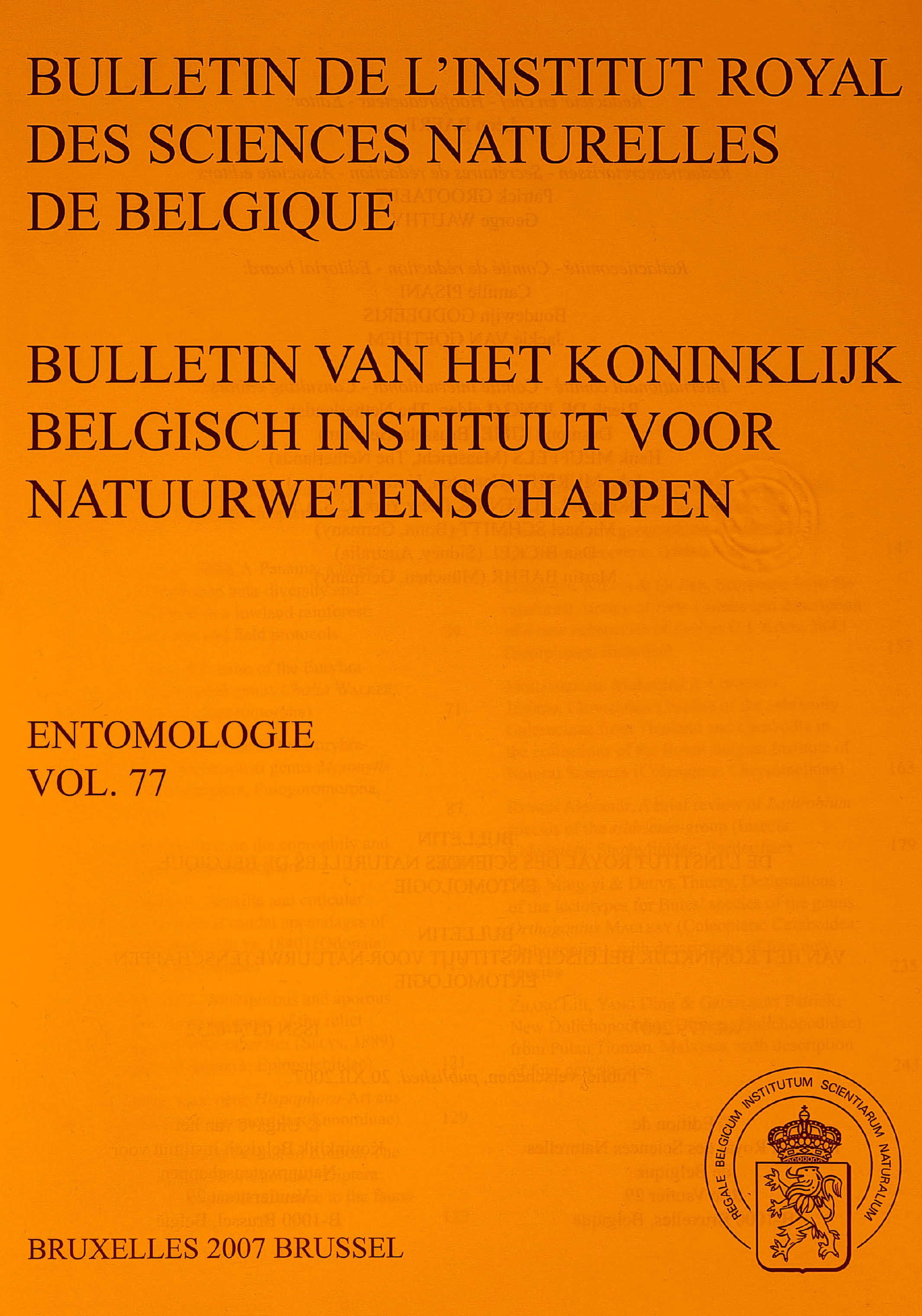 Bulletin of the Royal Belgian Institute of Natural Sciences - Entomology