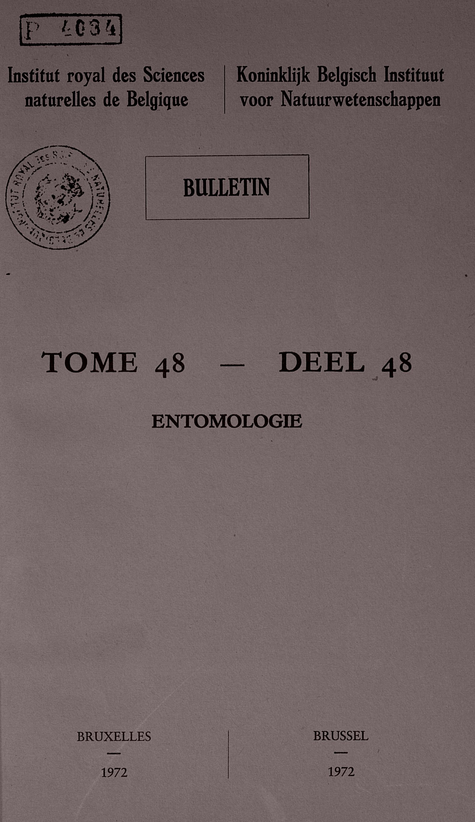 Bulletin of the Royal Belgian Institute of Natural Sciences - Entomology