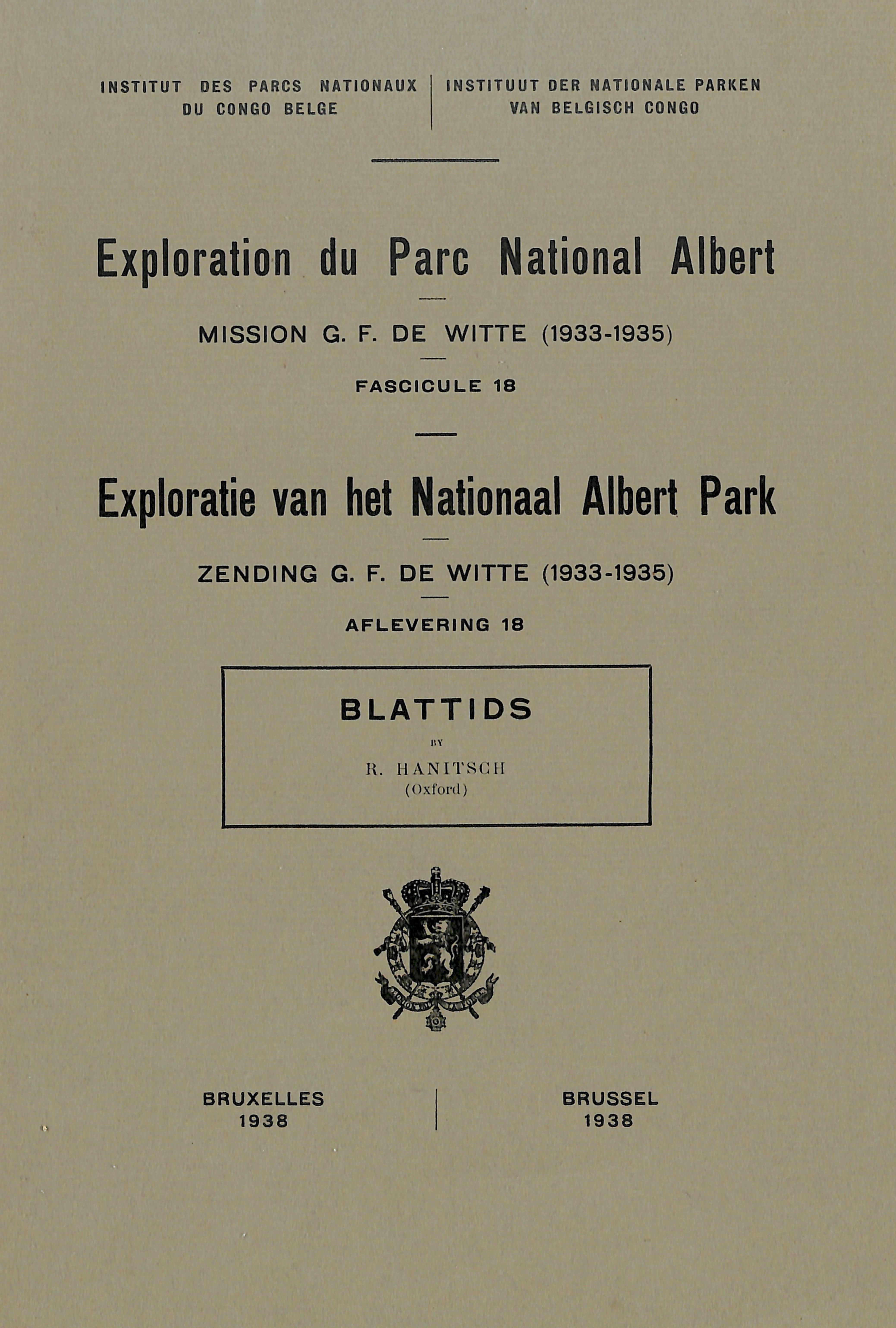 Exploration du Parc National Albert - Exploratie van het Nationaal Albert Park - Mission/Zending G.F. de Witte (1933-1935)