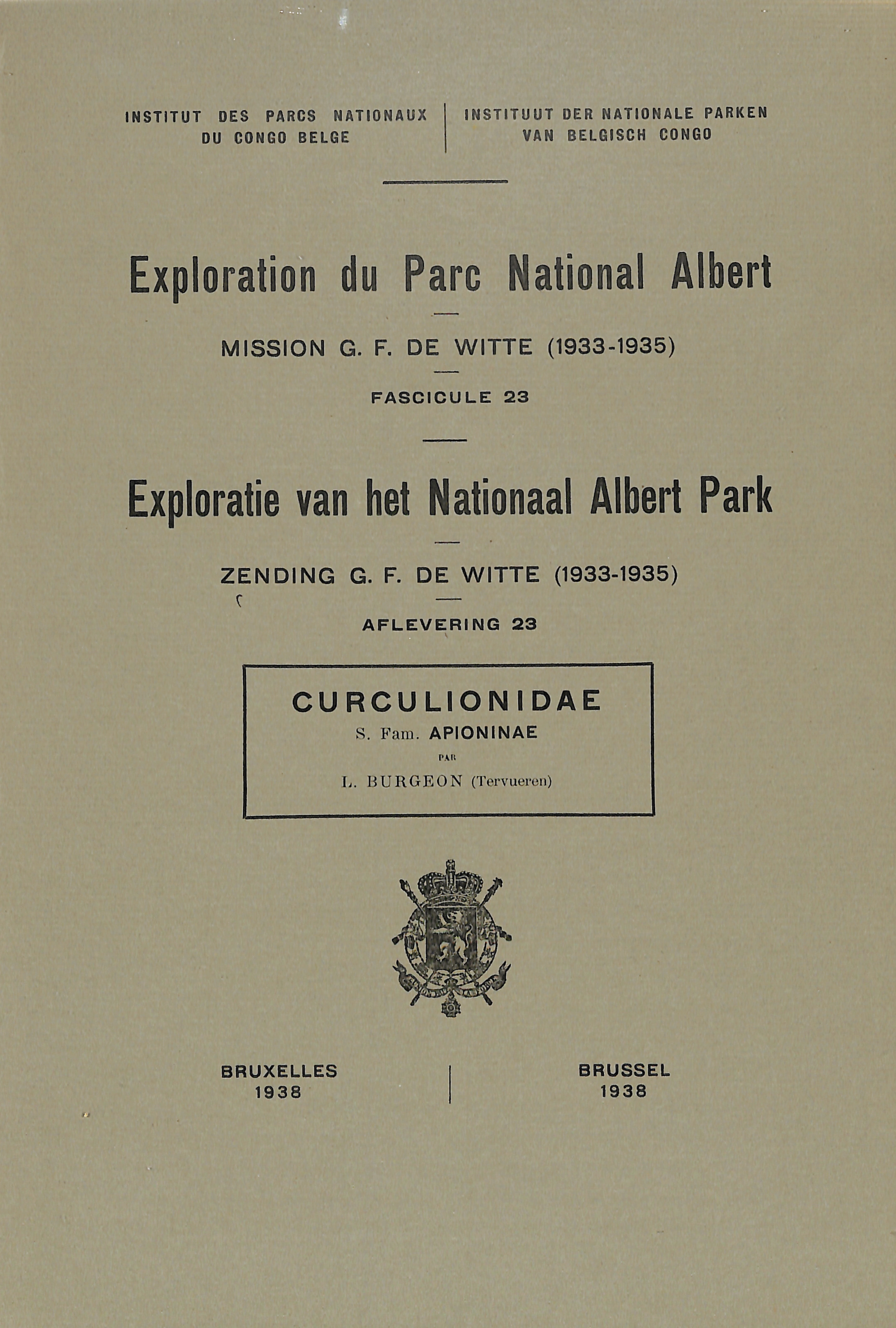 Exploration du Parc National Albert - Exploratie van het Nationaal Albert Park - Mission/Zending G.F. de Witte (1933-1935)
