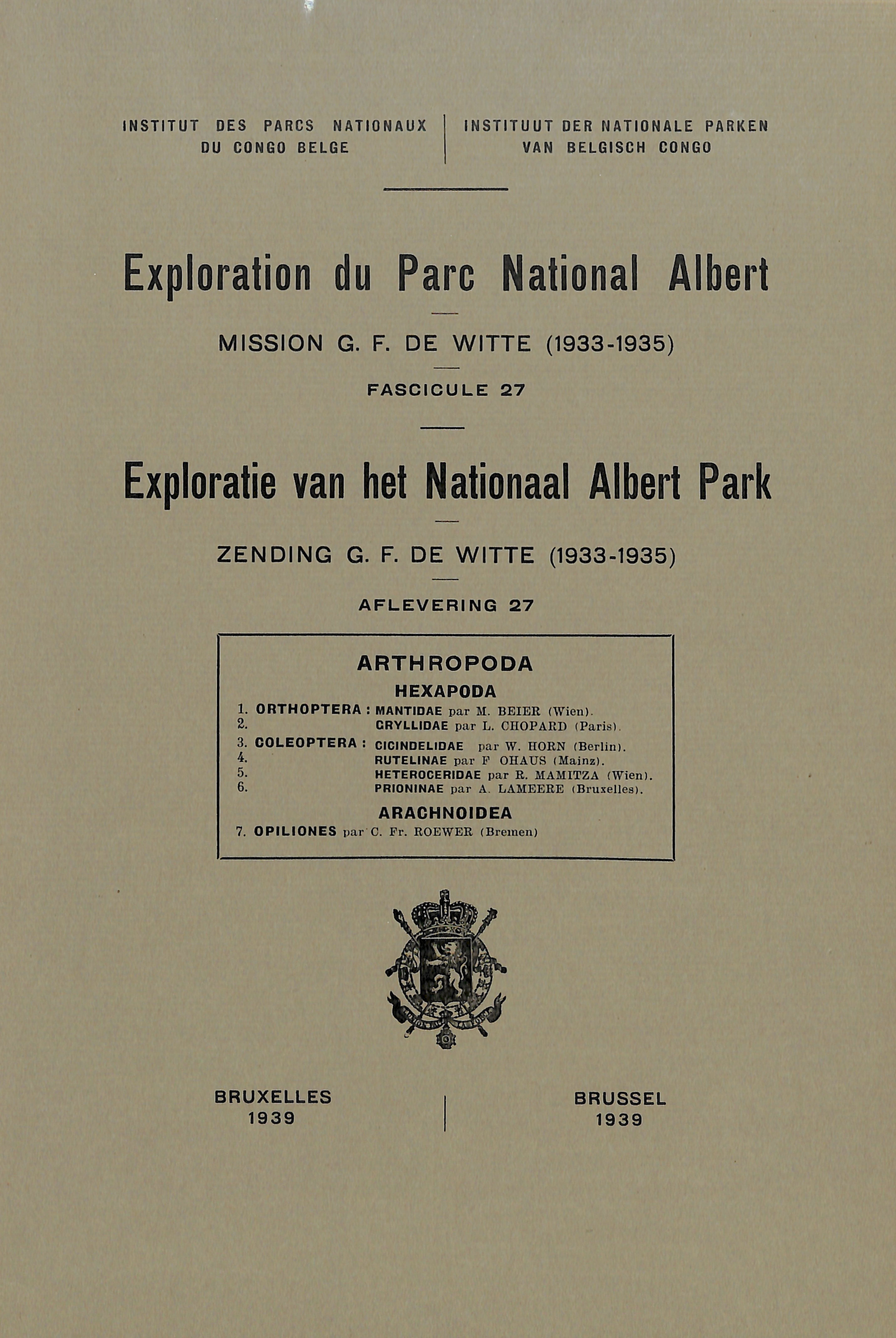 Exploration du Parc National Albert - Exploratie van het Nationaal Albert Park - Mission/Zending G.F. de Witte (1933-1935)
