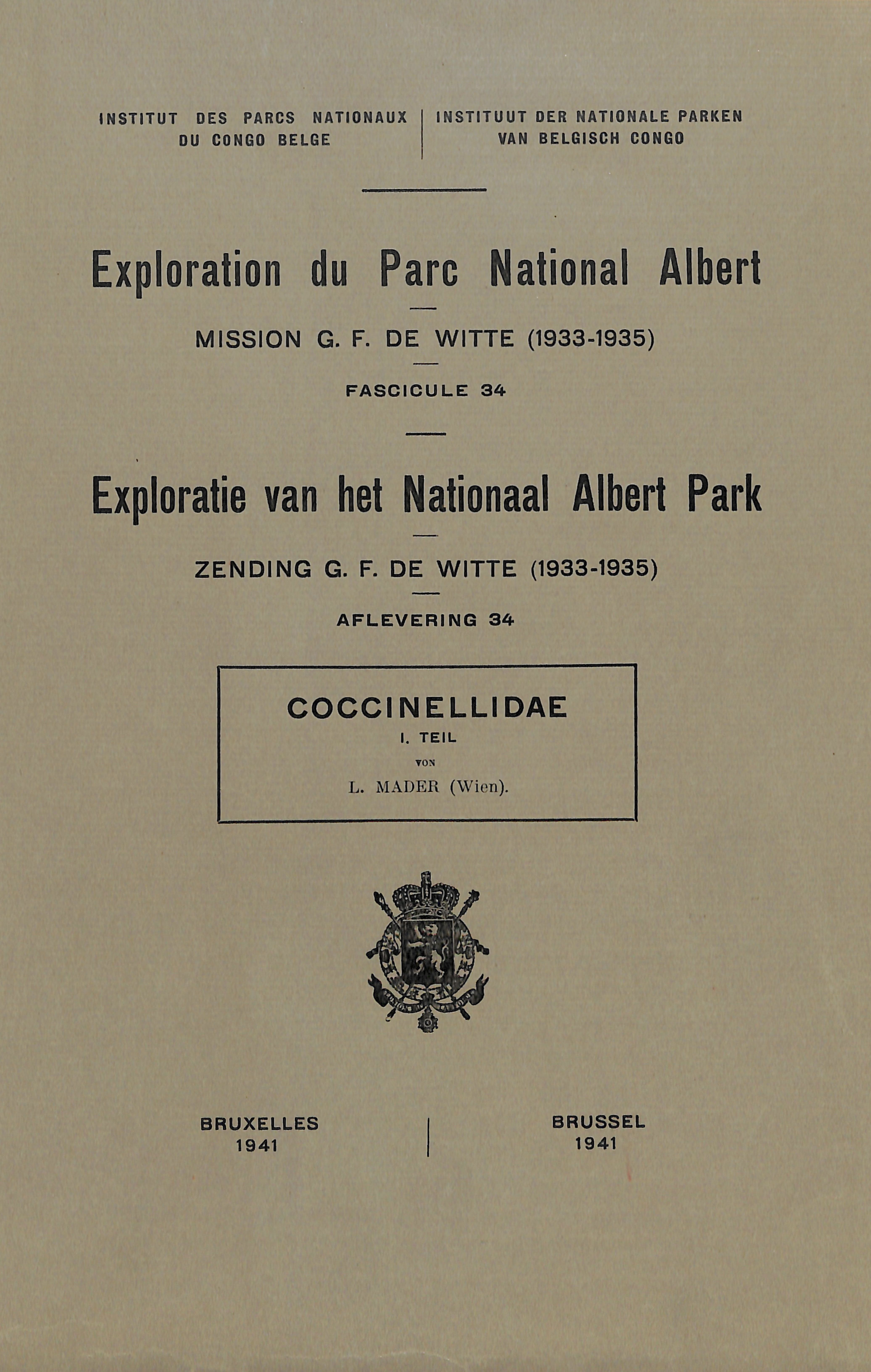 Exploration du Parc National Albert - Exploratie van het Nationaal Albert Park - Mission/Zending G.F. de Witte (1933-1935)