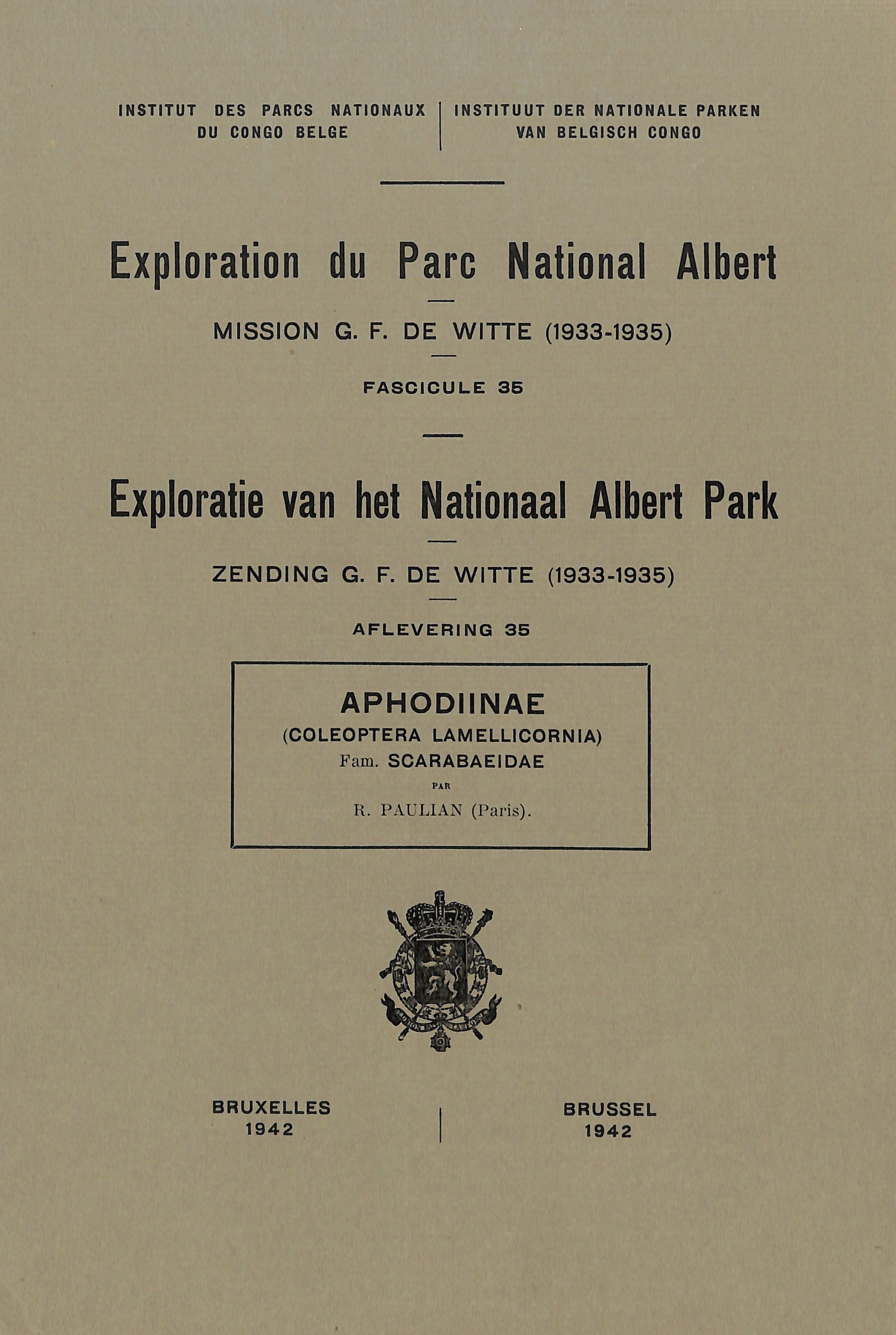 Exploration du Parc National Albert - Exploratie van het Nationaal Albert Park - Mission/Zending G.F. de Witte (1933-1935)