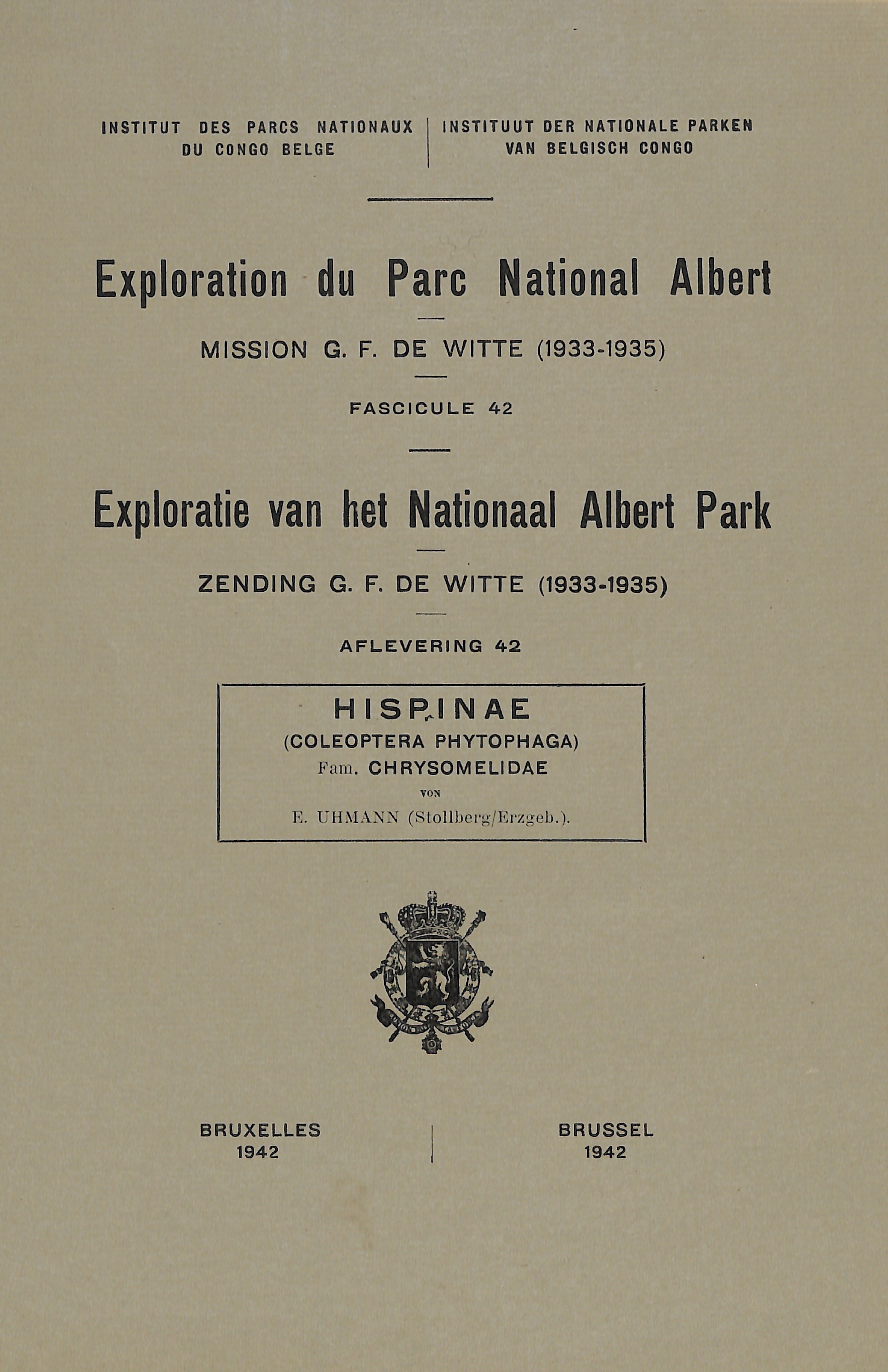 Exploration du Parc National Albert - Exploratie van het Nationaal Albert Park - Mission/Zending G.F. de Witte (1933-1935)