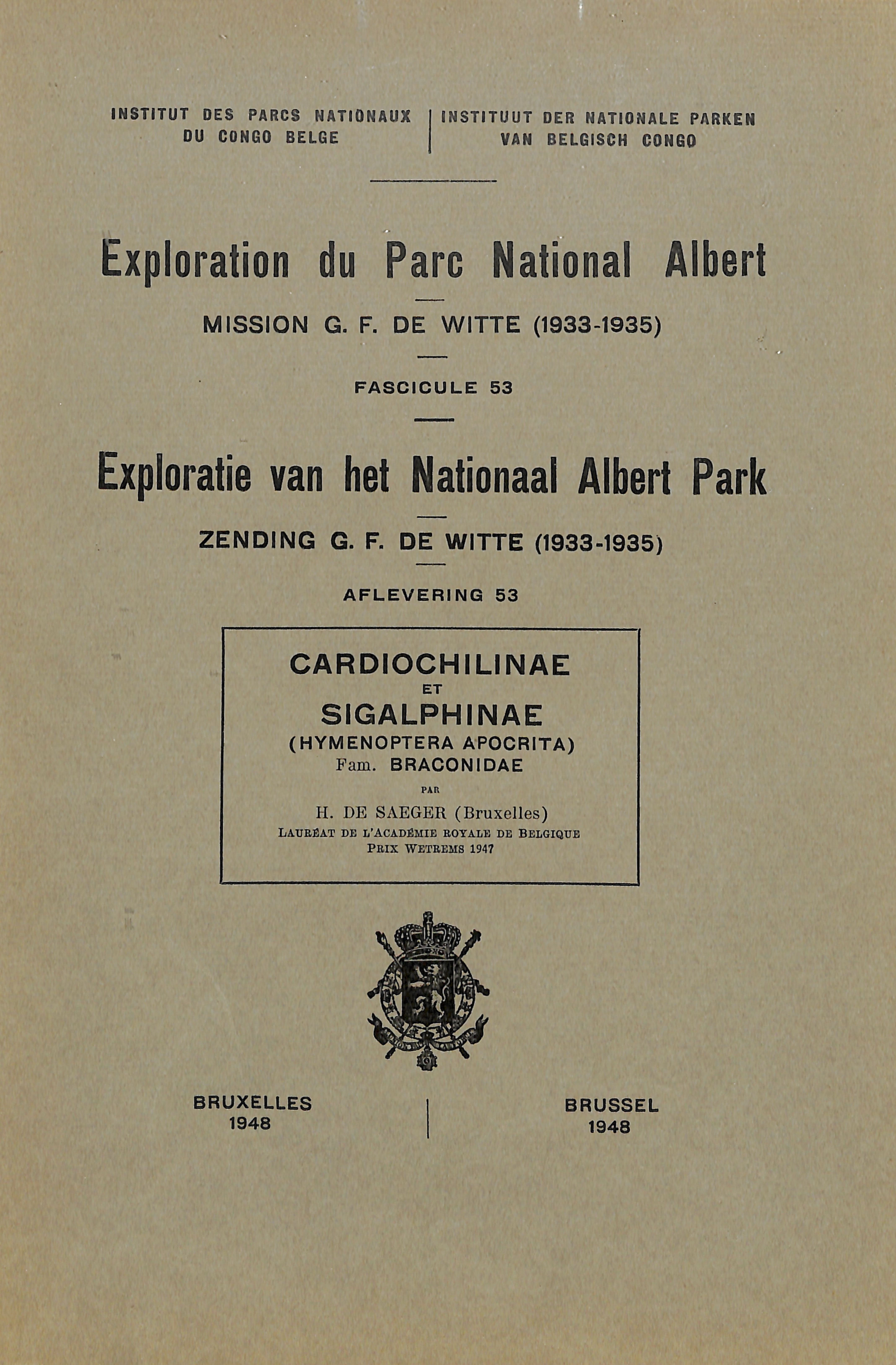 53-1948 - Cardiochilinae et Sigalphinae (Hymenoptera Apocrita) Fam. Braconidae
