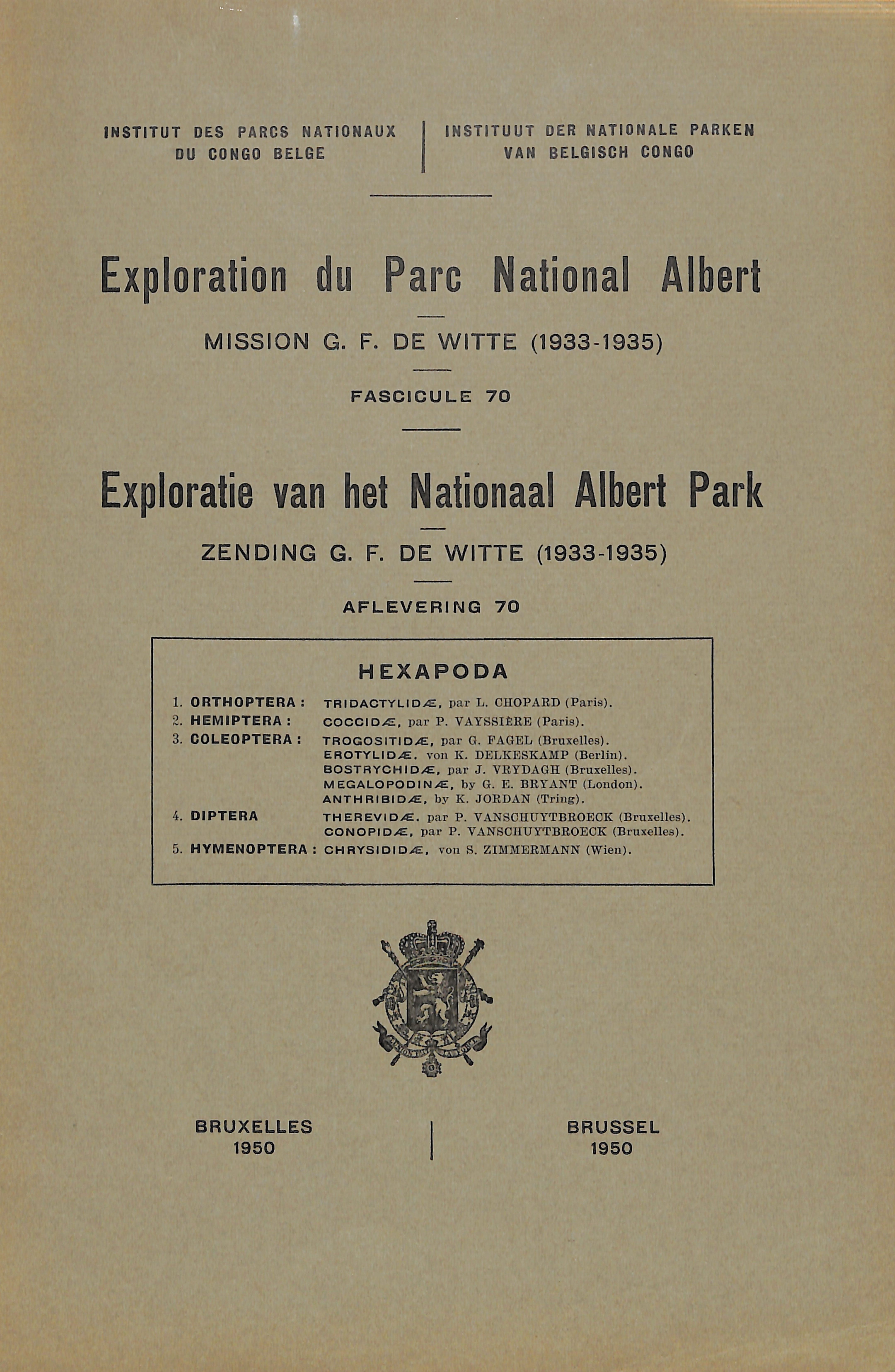 Exploration du Parc National Albert - Exploratie van het Nationaal Albert Park - Mission/Zending G.F. de Witte (1933-1935)