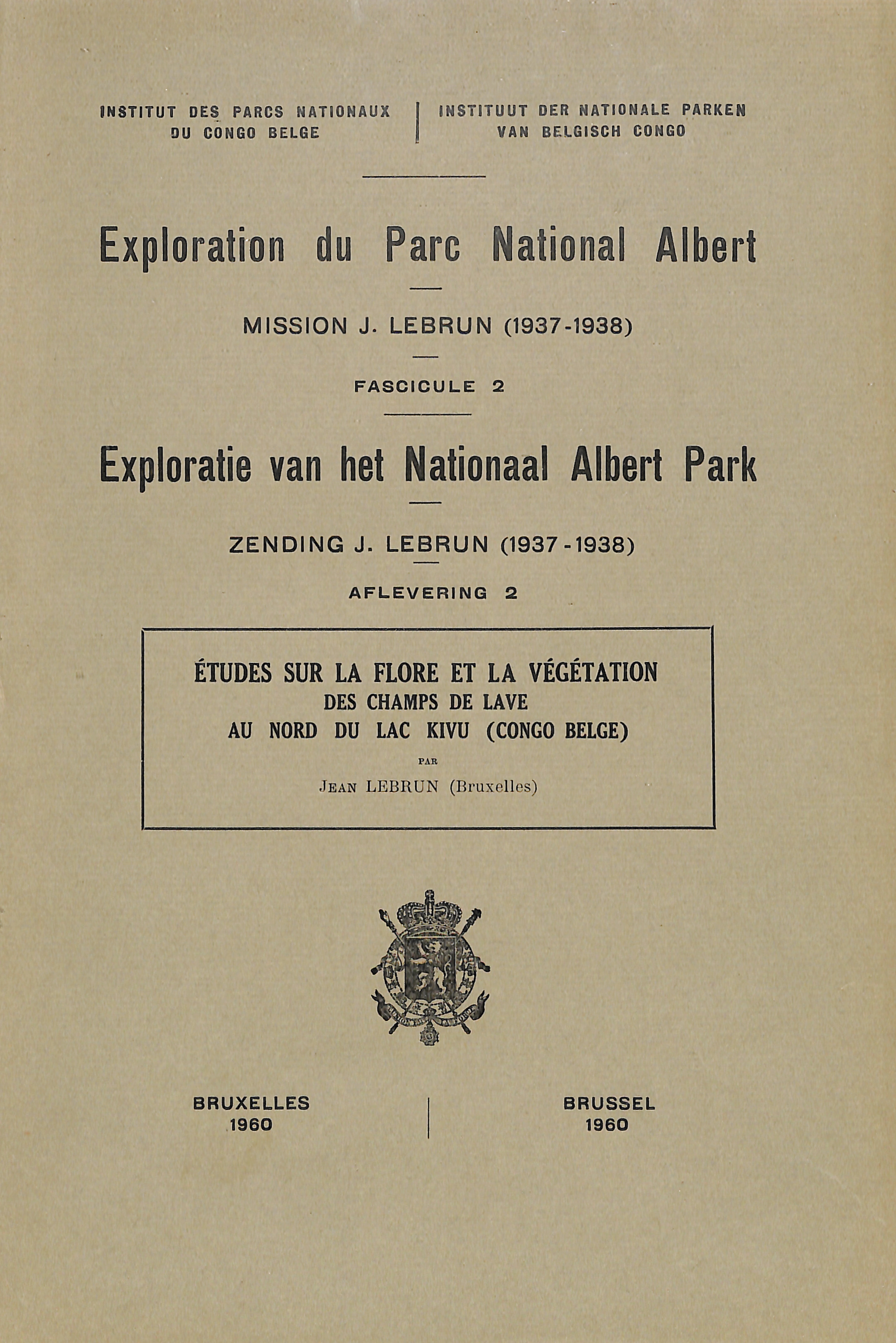 2-1960 - Etudes sur la flore et la végétation des champs de lave au nord du lac Kivu (Congo belge)
