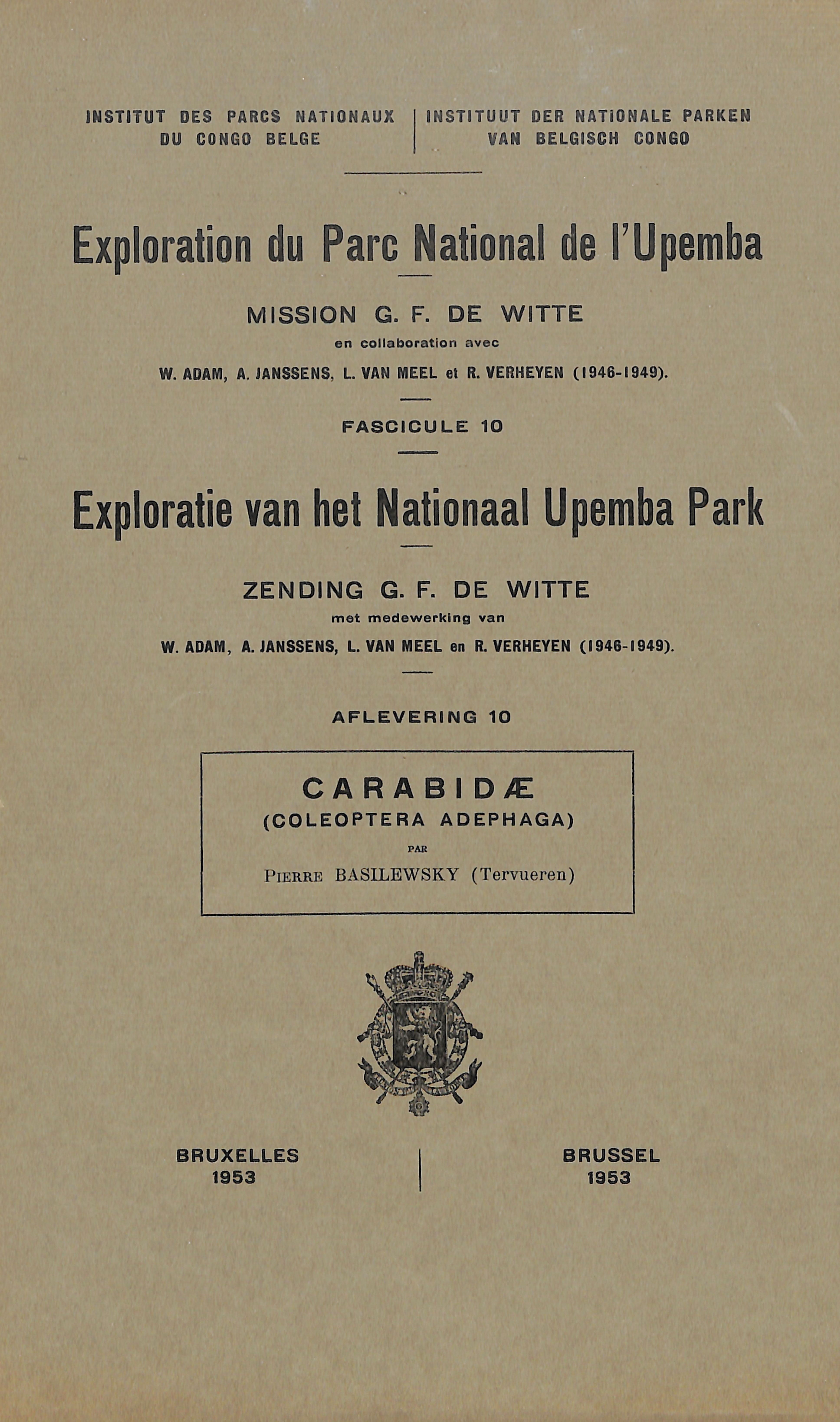 10-1953 - Mission/Zending G.F. de Witte - Carabidae (Coleoptera Adephaga)