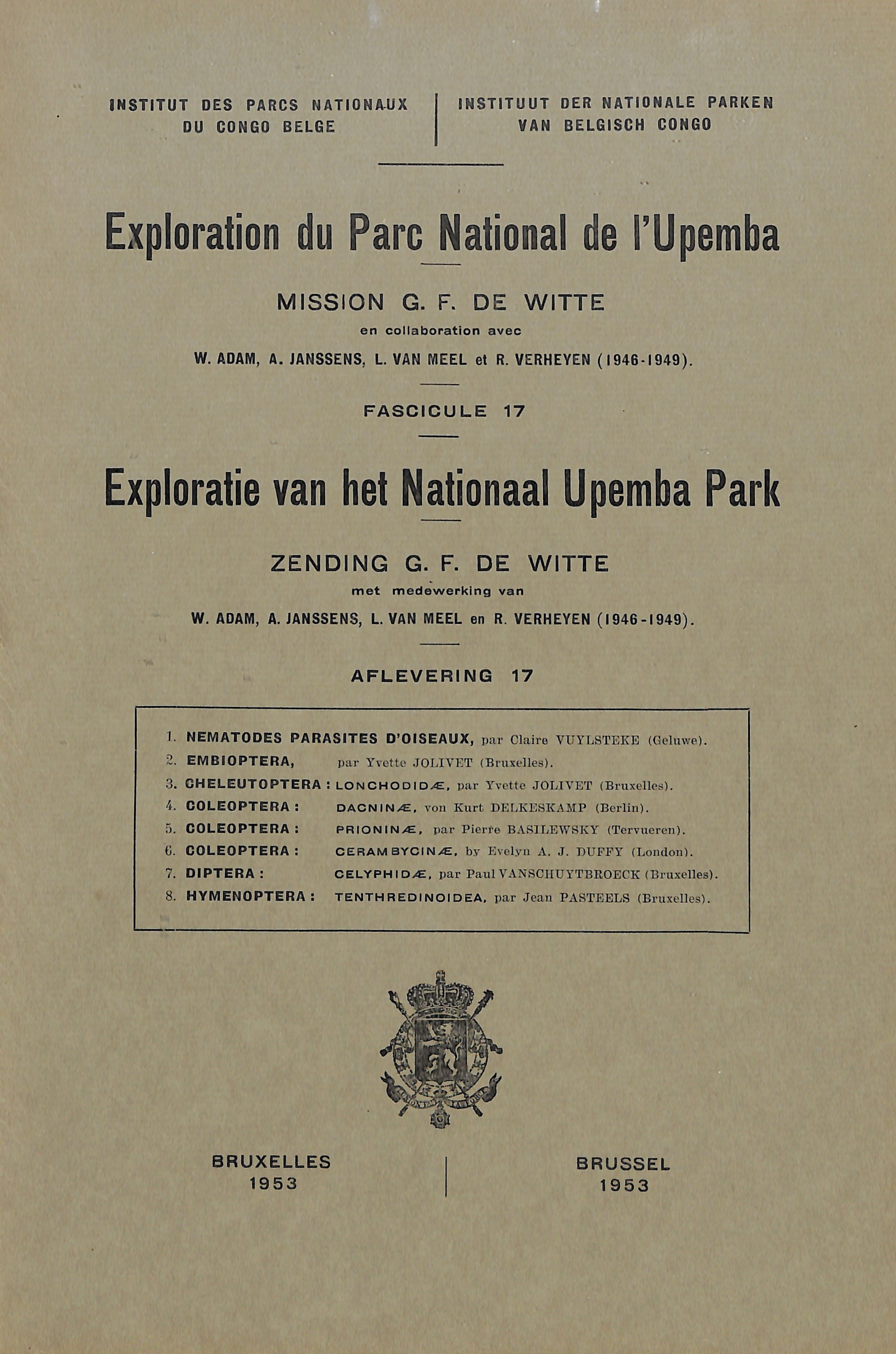 17-1953 - Mission/Zending G.F. de Witte - Nematodes parasites d'oiseaux, Embioptera, Cheleutoptera (Lonchodidae), Coleoptera (Dacninae, Prioninae, Cerambycinae), Diptera (Celyphidae), Hymenoptera (Tenthredinoidea)