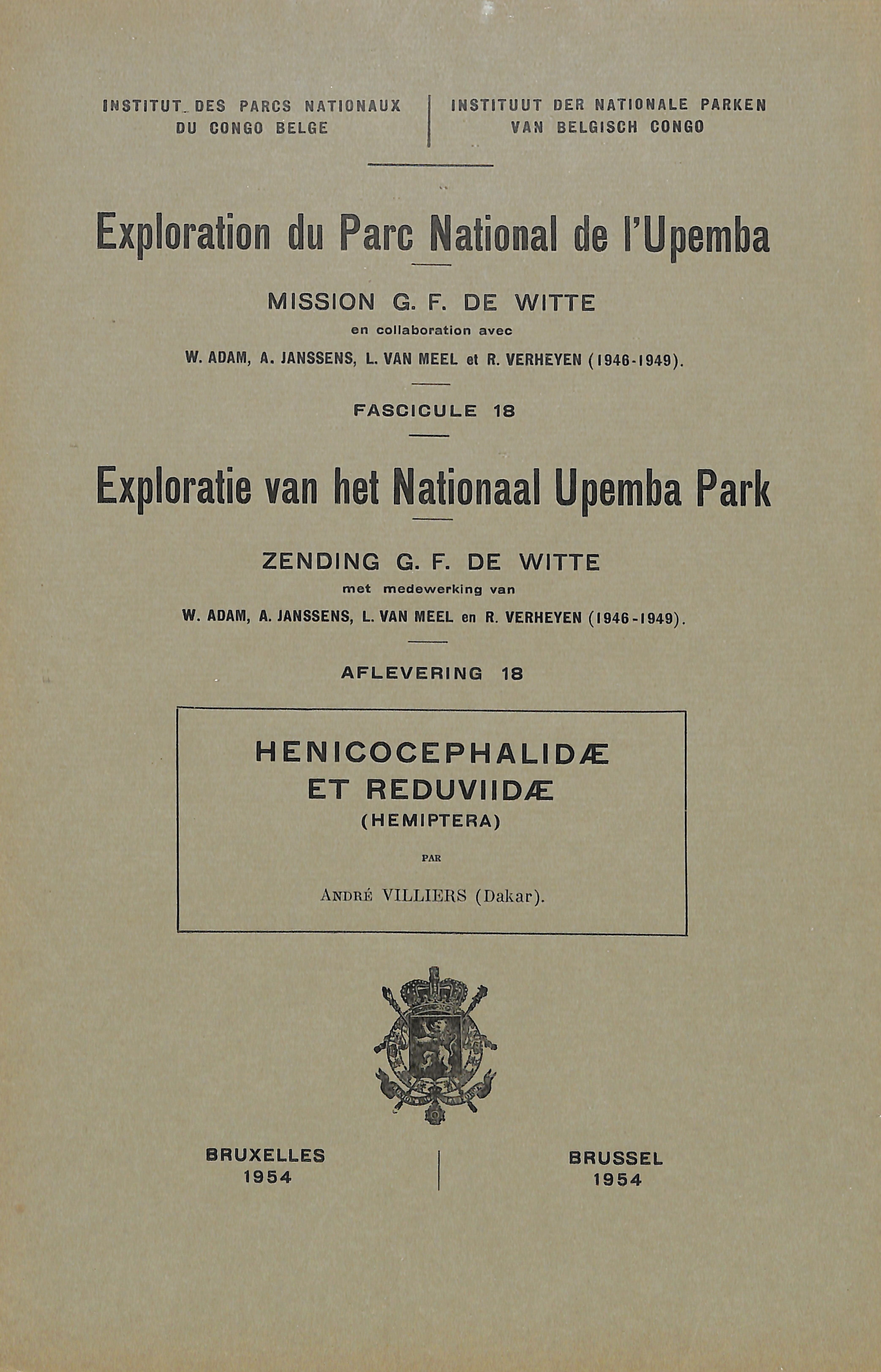 18-1954 - Mission/Zending G.F. de Witte - Henicocephalidae et Reduviidae