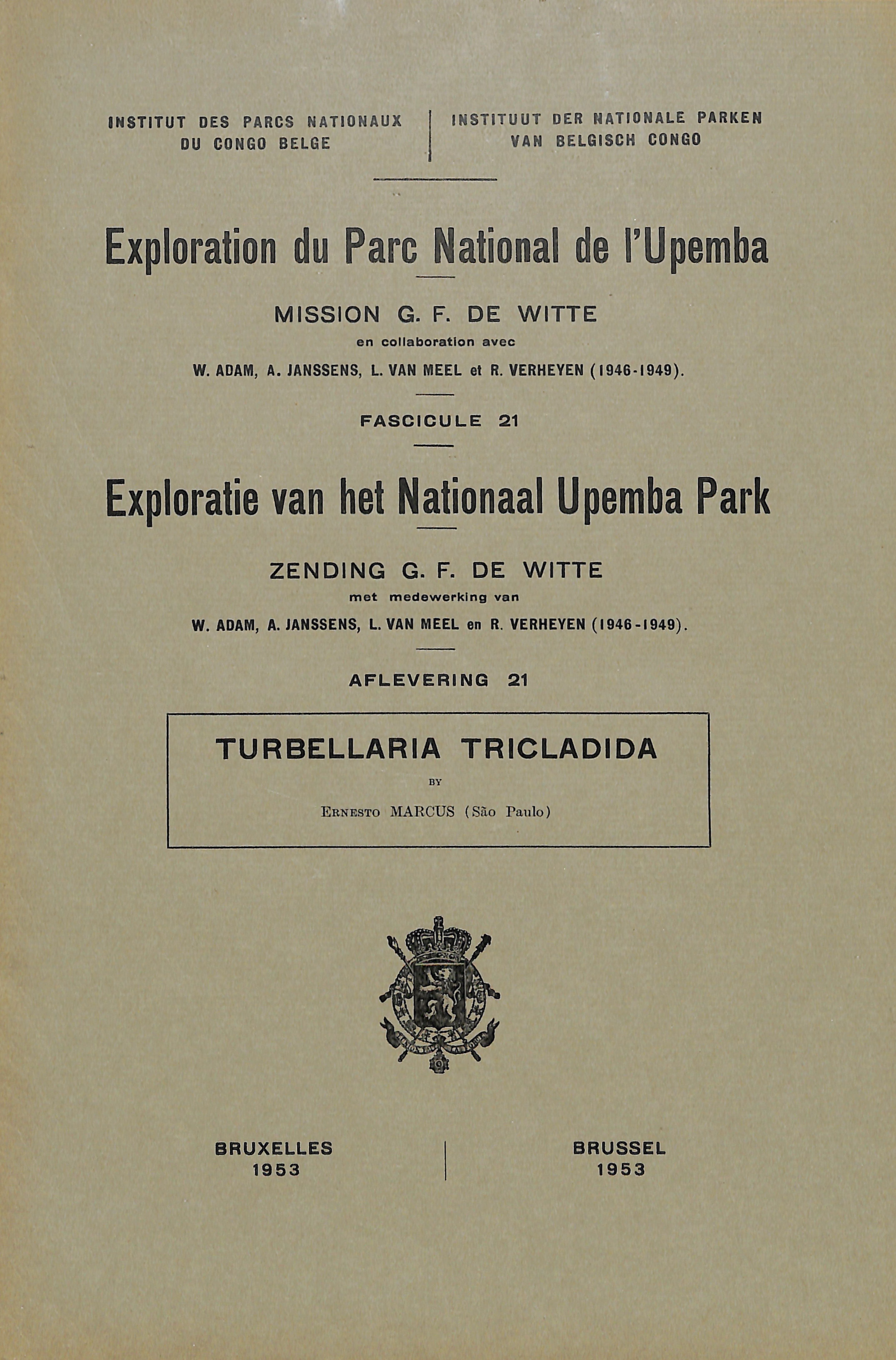Exploration du Parc National de l'Upemba - Exploratie van het Nationaal Upemba Park (1946-1949) Mission / Zending F. G. de Witte