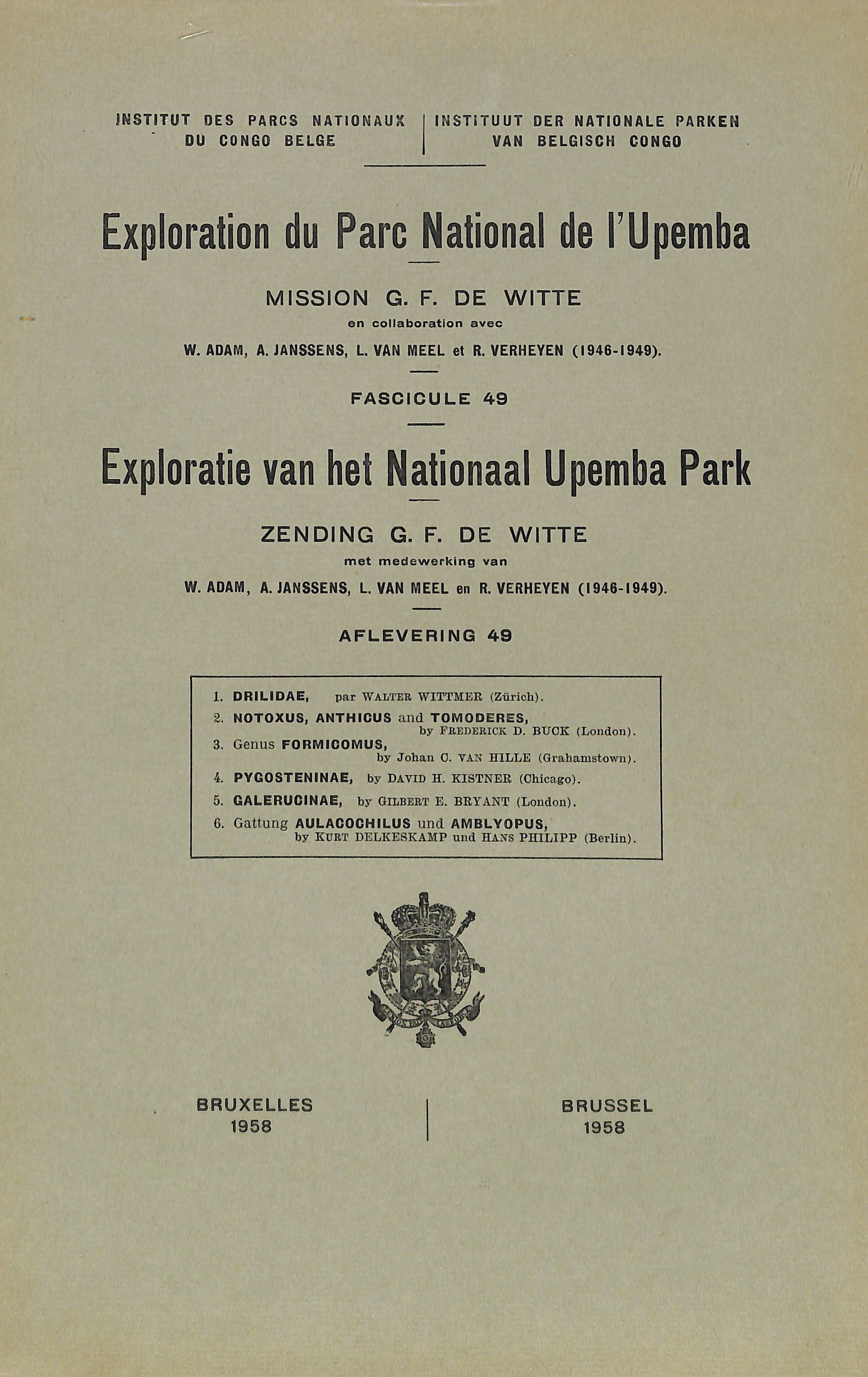Exploration du Parc National de l'Upemba - Exploratie van het Nationaal Upemba Park (1946-1949) Mission / Zending F. G. de Witte