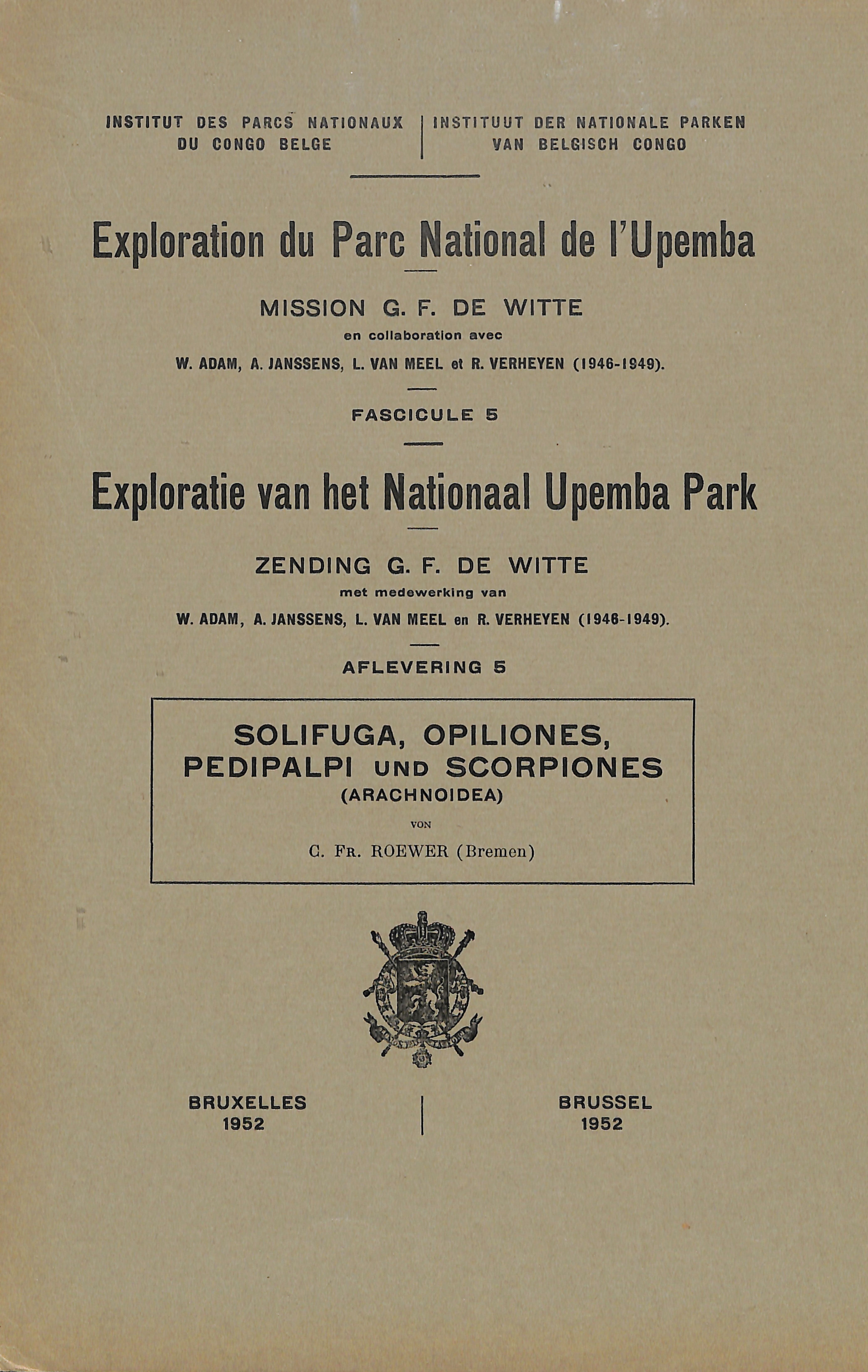 5-1952 - Mission/Zending G.F. de Witte - Solifuga, Opiliones, Pedipalpi und Scorpiones (Arachnoidea)
