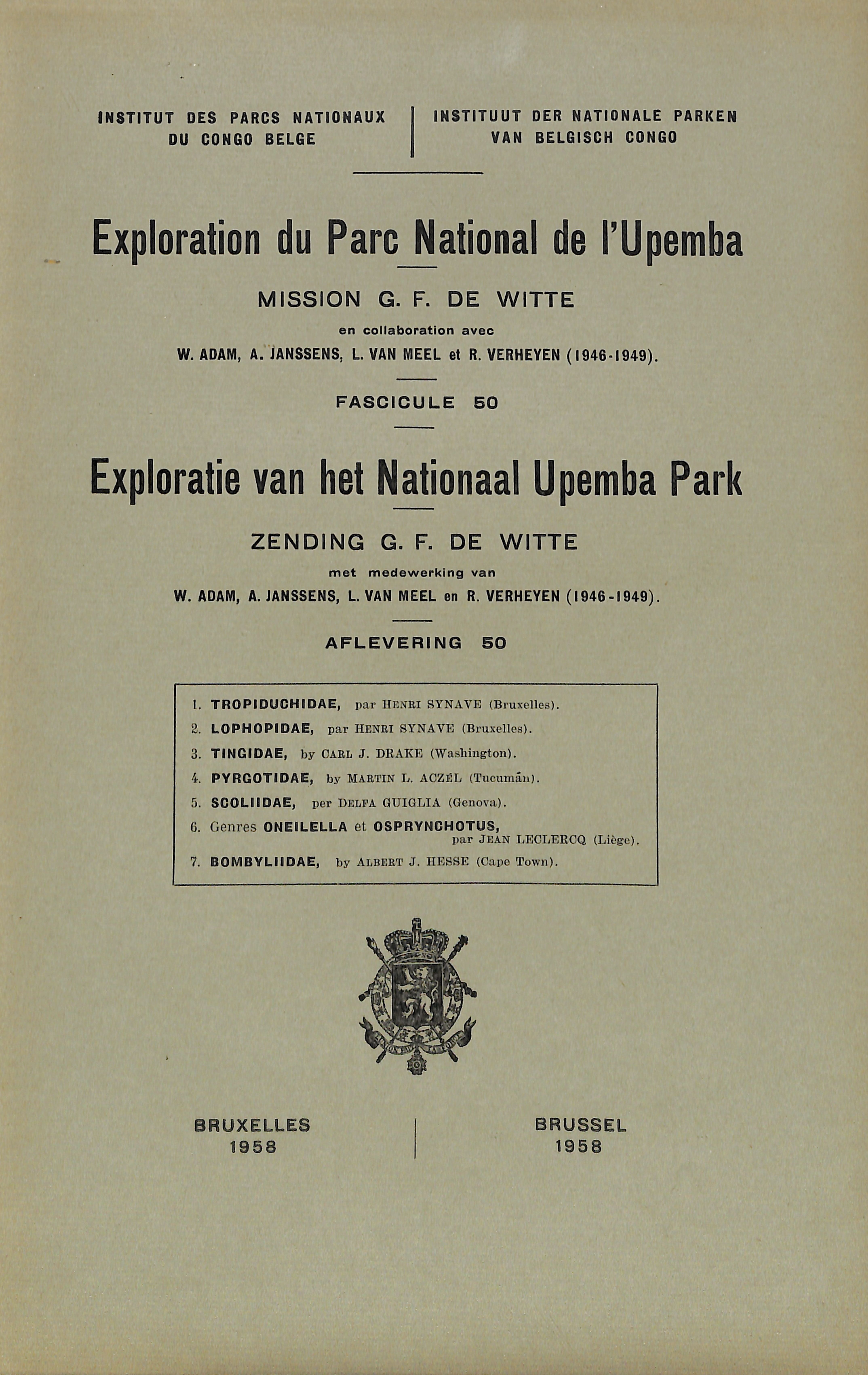50-1958 - Mission/Zending G.F. de Witte - Tropiduchidae, Lophopidae, Tingidae, Pyrgotidae, Scoliidae, genres Oneilella et Osprynchotus, Bombyliidae