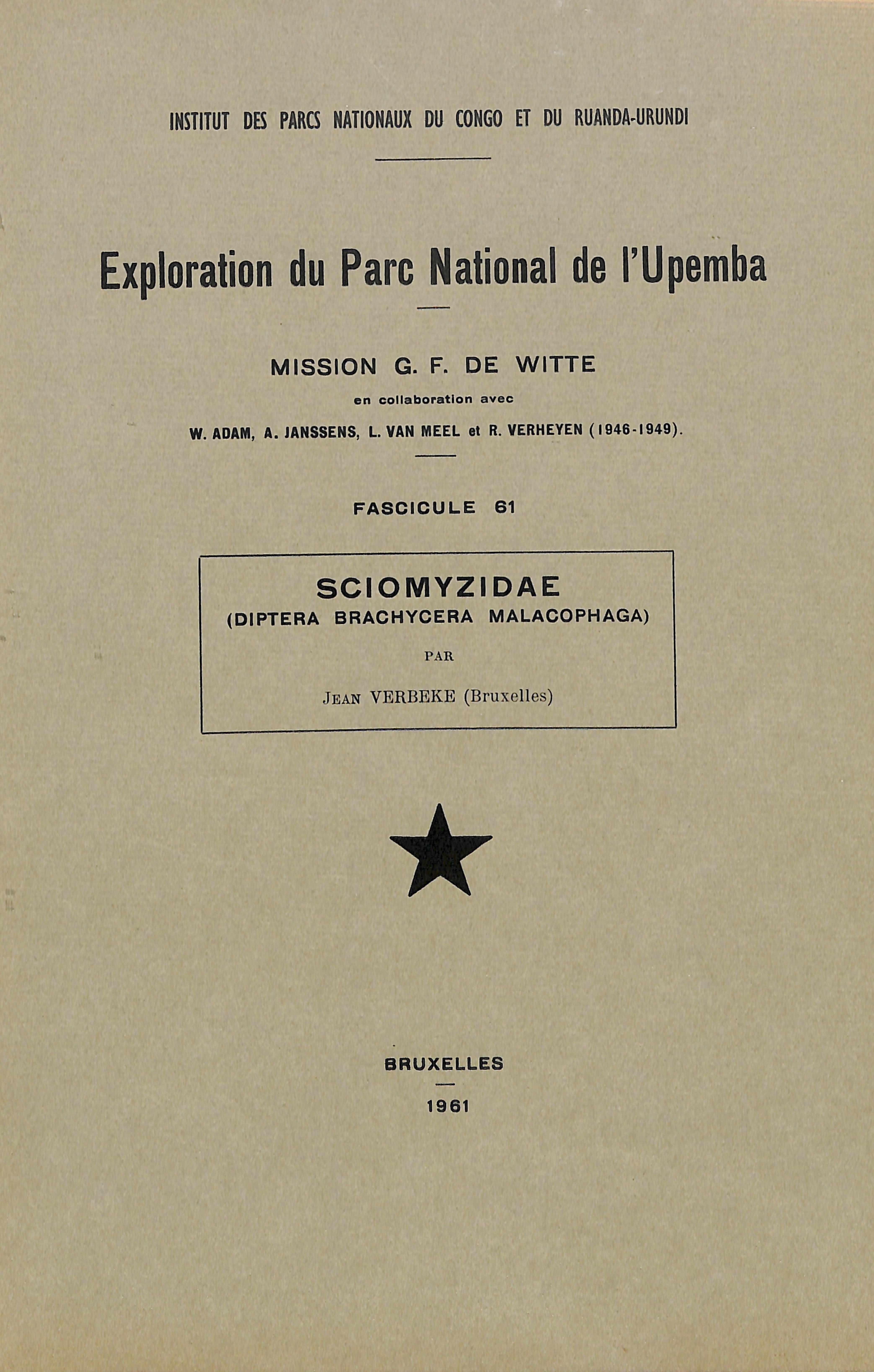 Exploration du Parc National de l'Upemba - Exploratie van het Nationaal Upemba Park (1946-1949) Mission / Zending F. G. de Witte