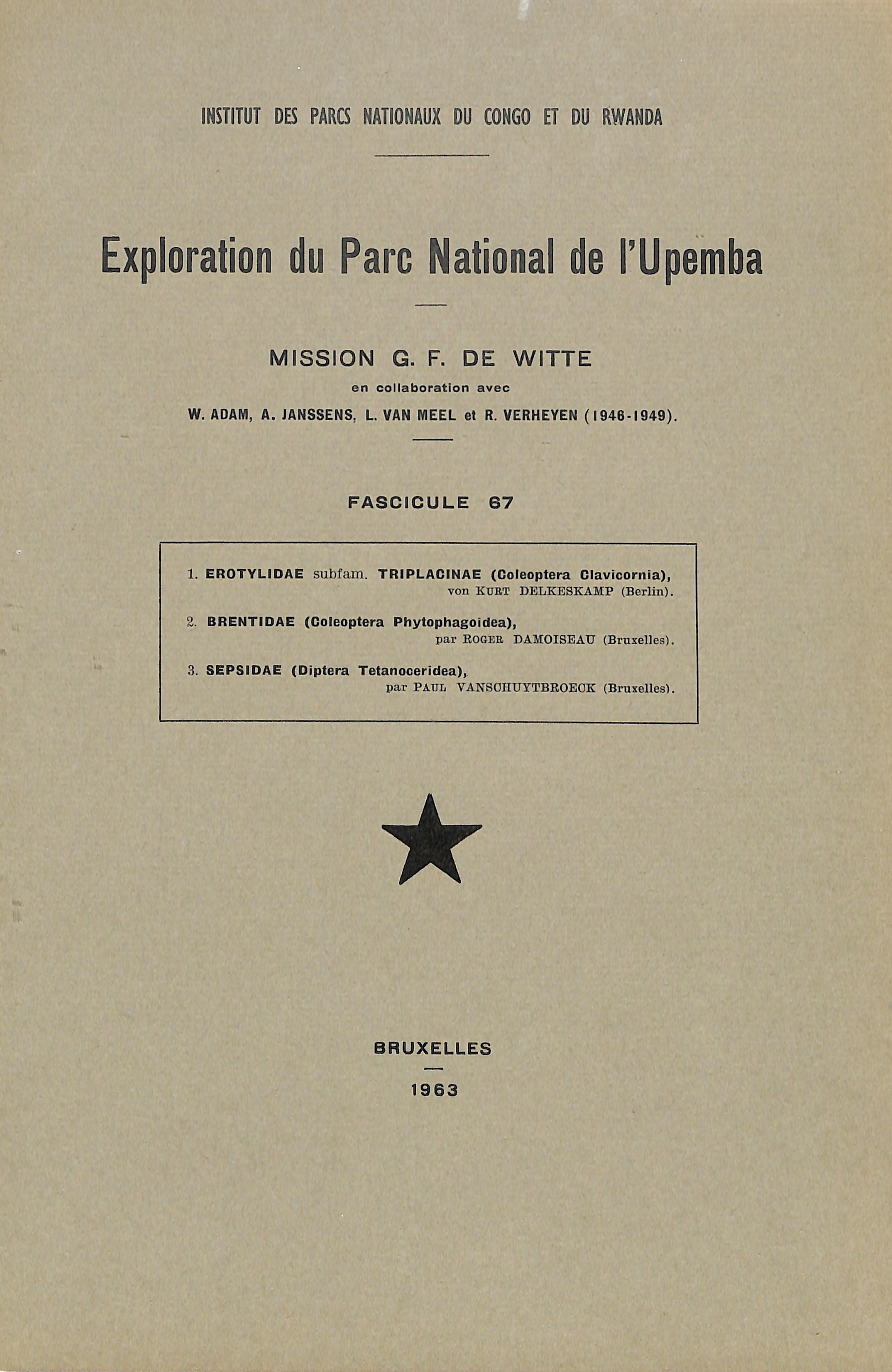 67-1963 - Mission/Zending G.F. de Witte - Erotylidae subfam. Triplacinae (Coleoptera Clavicornia), Brentidae (Coleoptera Phytophagoidea), Sepsidae (Diptera Tetanoceridea)