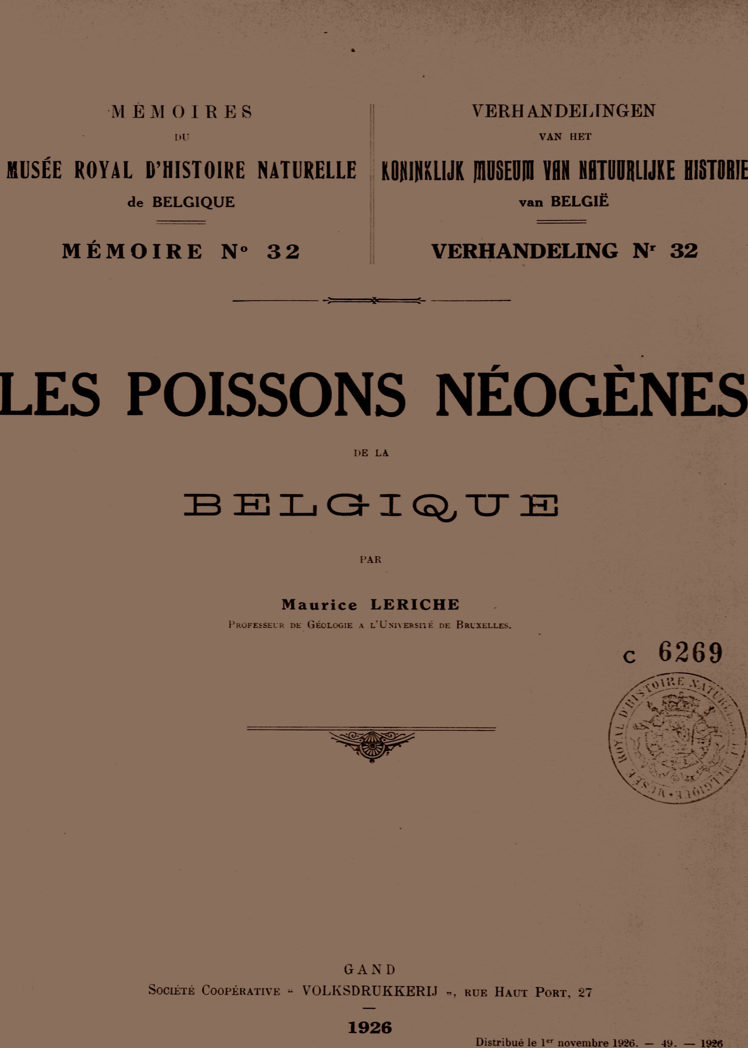 Memoirs of the Royal Belgian Museum of Natural Sciences