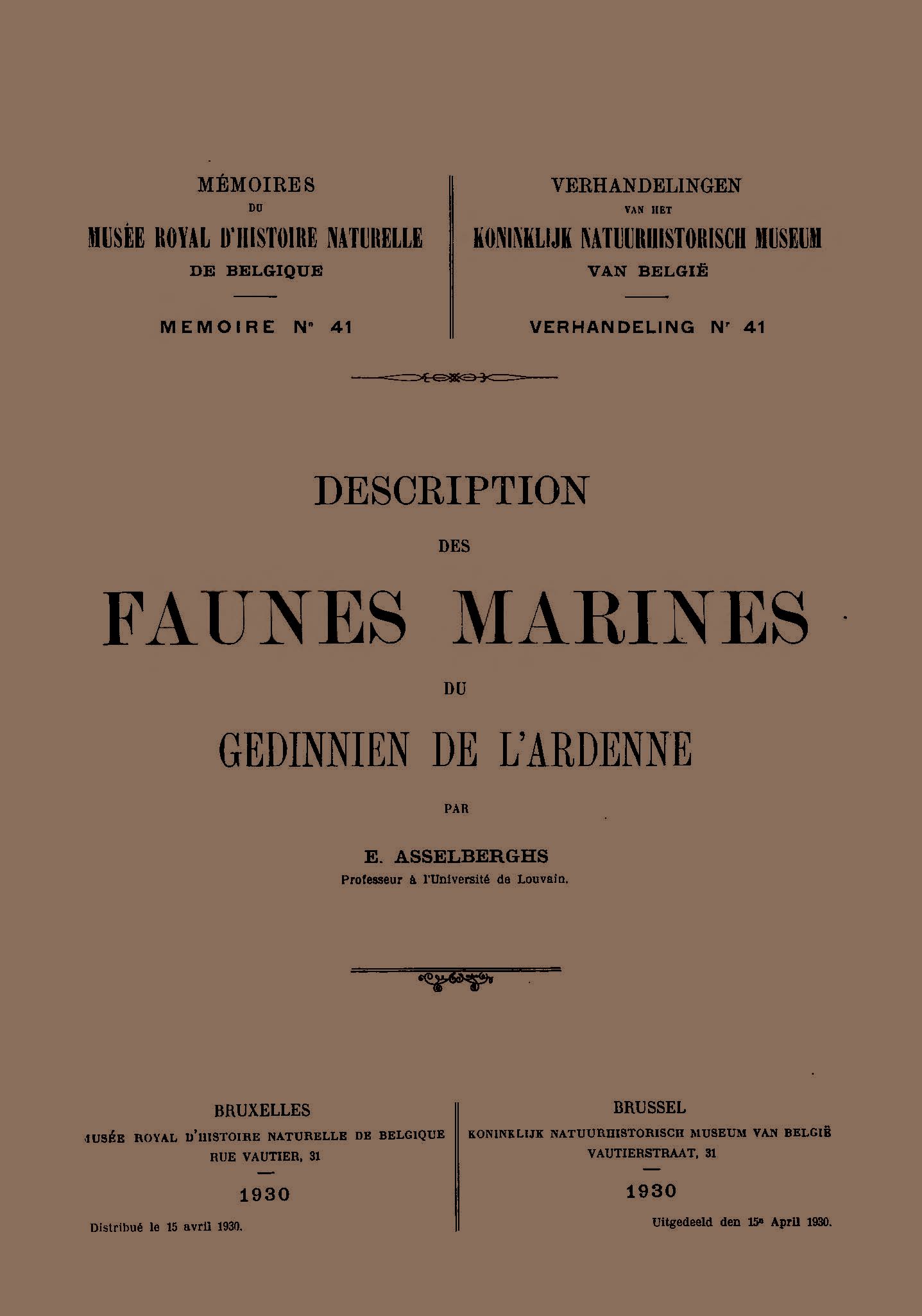 Memoirs of the Royal Belgian Museum of Natural Sciences