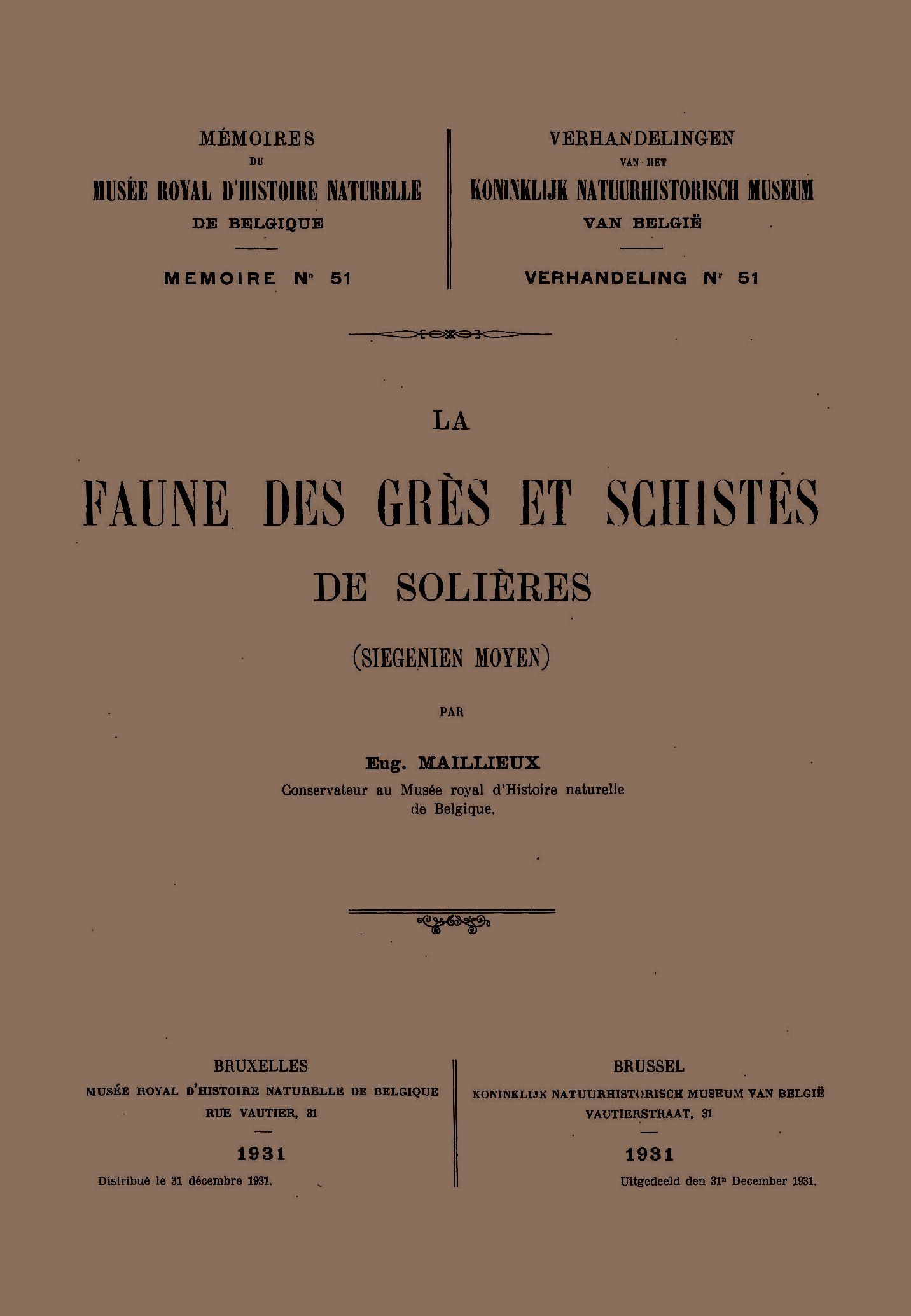 Memoirs of the Royal Belgian Museum of Natural Sciences