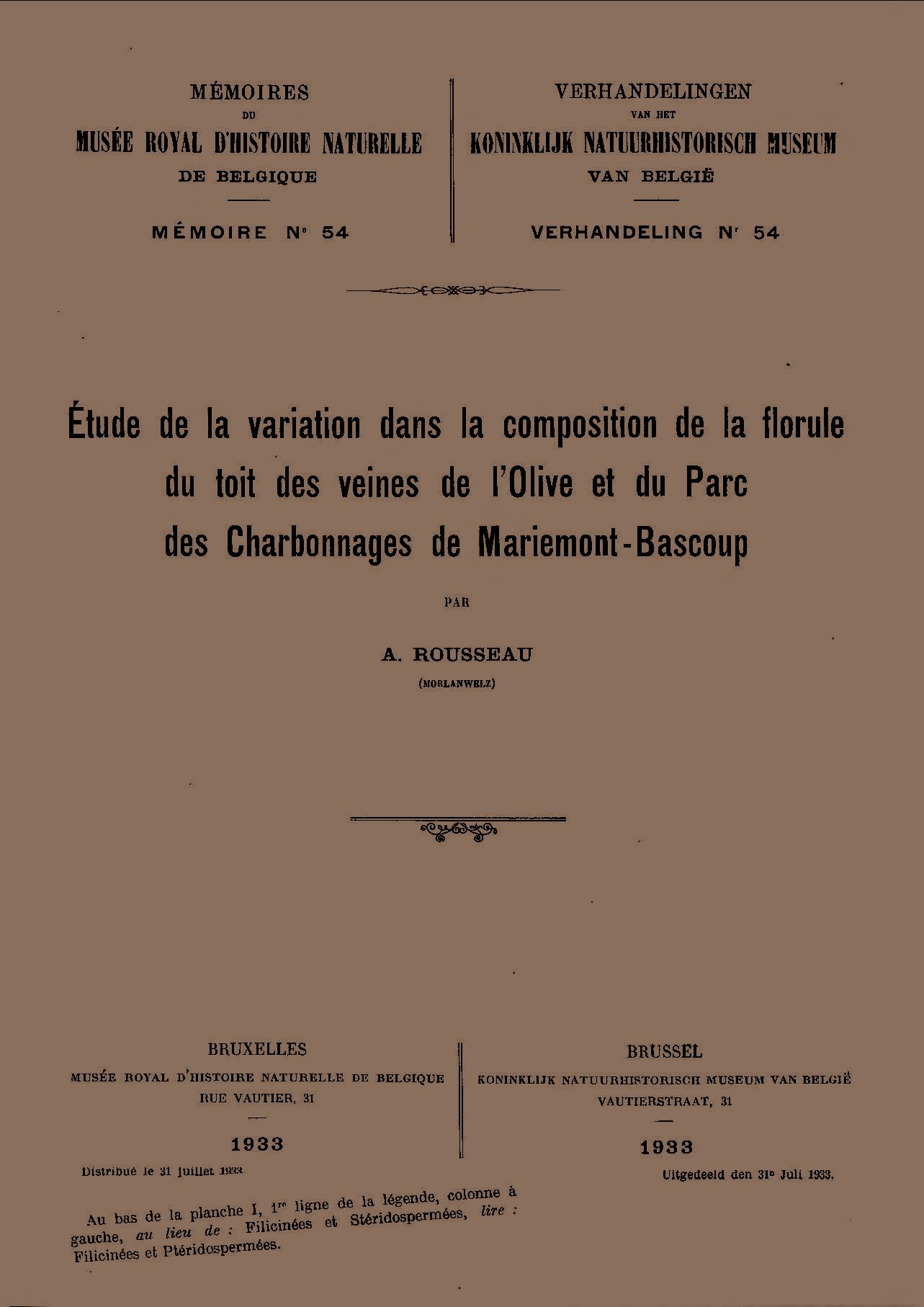 Memoirs of the Royal Belgian Museum of Natural Sciences